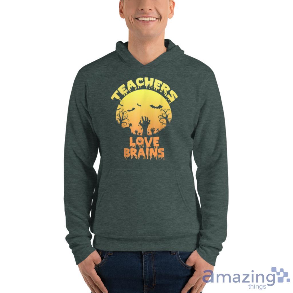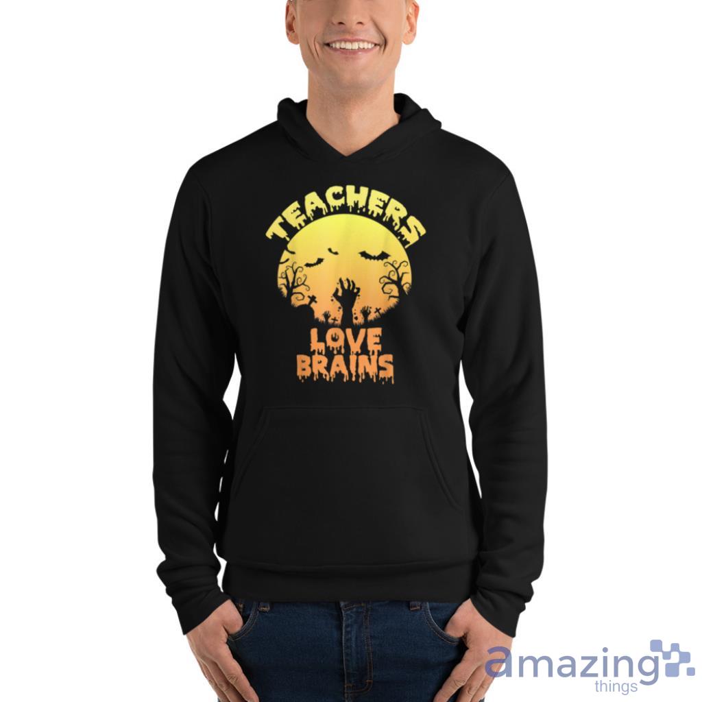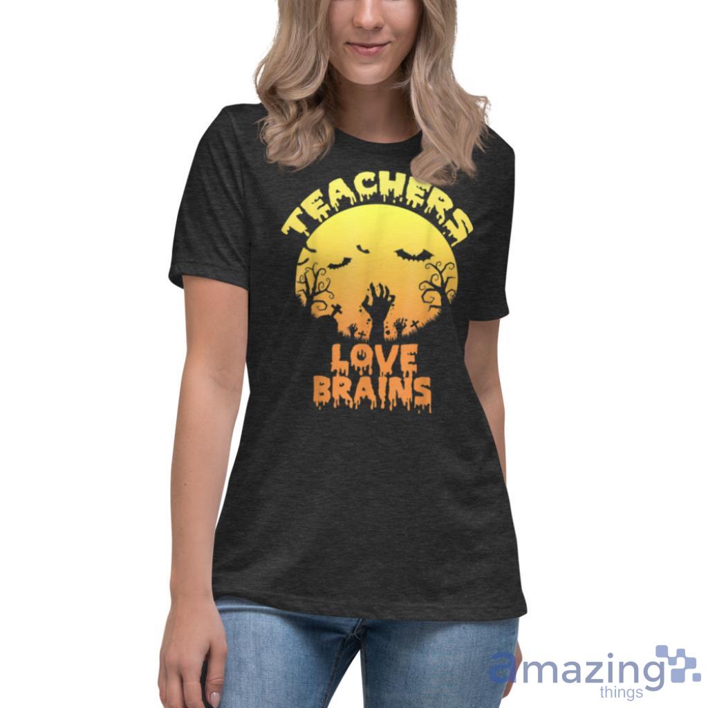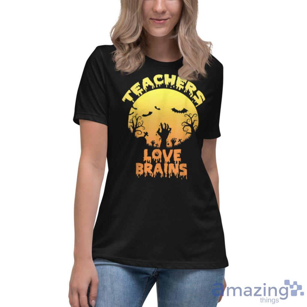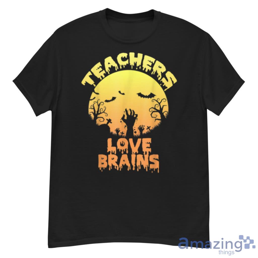 Horror Zombie Halloween Teachers Love Brains T Shirt Details