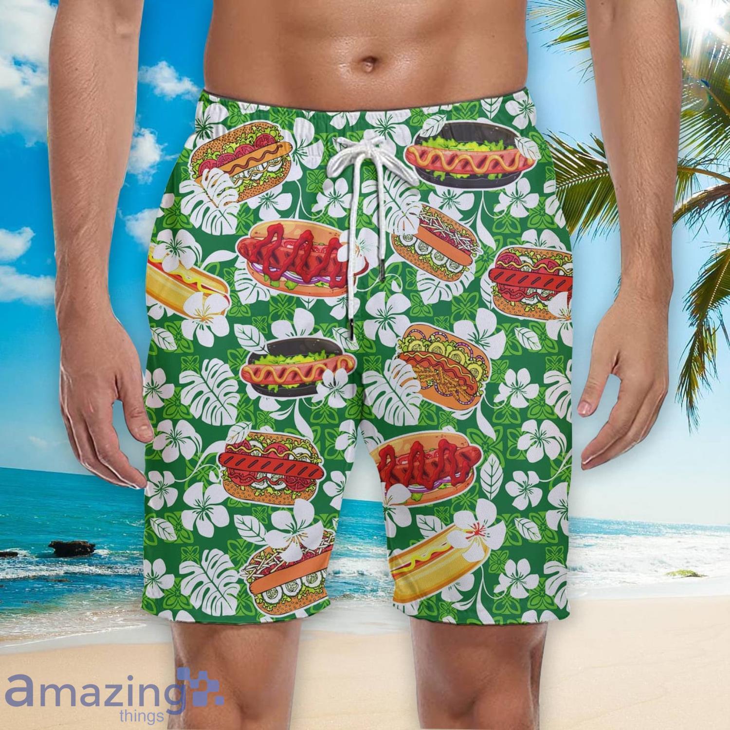 The eye-catching Hot Dog design adds a playful and vibrant touch to your beach look, making you stand out from the crowd. Whether you’re lounging by the pool or riding the waves, these shorts will keep you looking effortlessly cool and trendy. The tropical vibes of the print will transport you to a sunny paradise, even if you’re miles away from the beach.