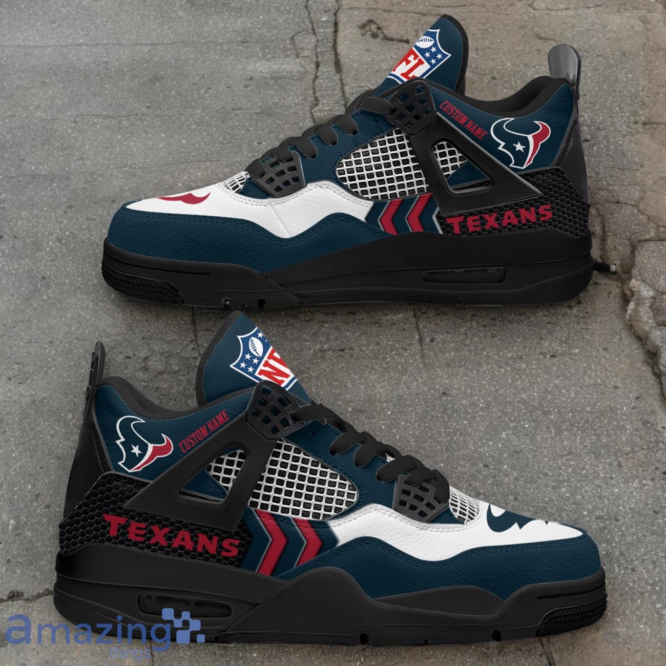 Elevate your game day style with the Houston Texans NFL Air Jordan 4 Custom Name Sneaker For Fans. Show your team pride in a unique and personalized way with these one-of-a-kind sneakers. Featuring the iconic Air Jordan 4 silhouette and customized with your name, these shoes are sure to turn heads both on and off the field. Perfect for die-hard Texans fans who want to stand out from the crowd. Step up your sneaker game and represent your team in style with these exclusive kicks.