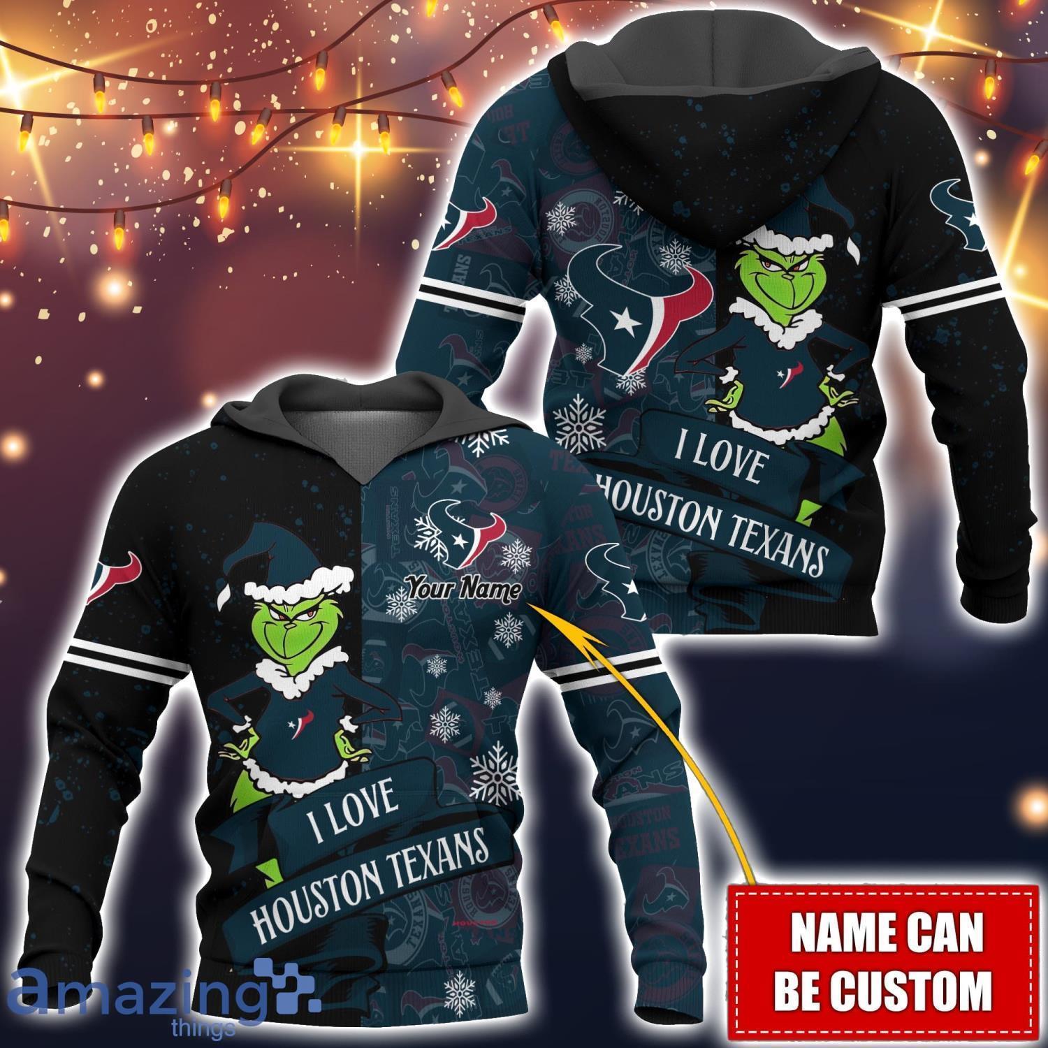 Houston Texans NFL Fans Grinch Love All Over Printed 3D Hoodie Custom Name Christmas Gift Information