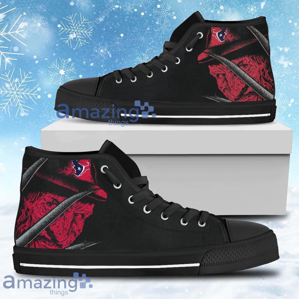 Featuring the iconic Houston Texans logo, these high tops will instantly elevate your game day outfit. The Nightmare Freddy design adds a unique and playful touch, making them a standout choice among other footwear options.