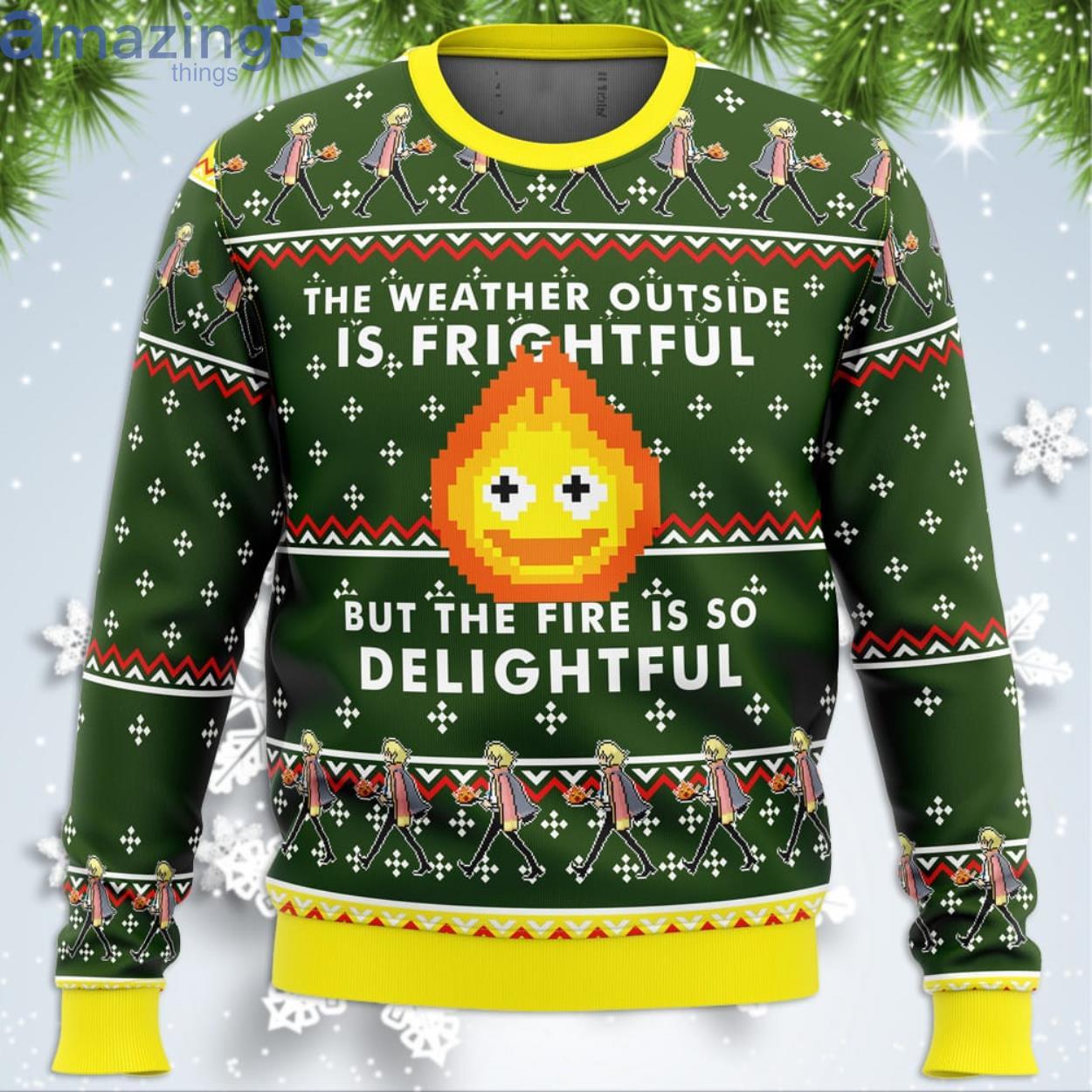 HOWLS MOVING CASTLE Calcifer Fire Is So Delightful Funny Christmas Gift Ugly Christmas Sweater Informations: