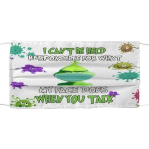 By choosing the “I Can’t Be Held Responsible For What My Face Does When You Talk Face Mask”, you’re getting a comfortable, reusable, and high-quality face covering that also serves as a hilarious form of self-expression.