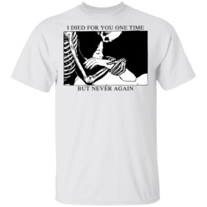 Wearing the “I Died For You One Time But Never Again Shirt” is about embracing its message and incorporating it into your personal style.* Pair the t-shirt with jeans or shorts for a simple, impactful look.* Layer the hoodie or sweatshirt over a base layer for warmth and effortless style.* Use the long sleeve version as a standalone top or layered under a jacket.The bold text serves as the focal point, allowing you to keep the rest of your outfit relatively simple or mix it with other interesting pieces depending on your mood and desired aesthetic. It’s a piece that works across various casual settings.