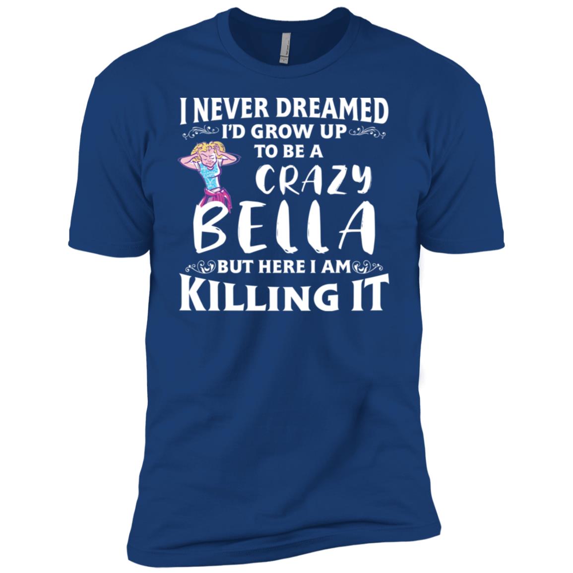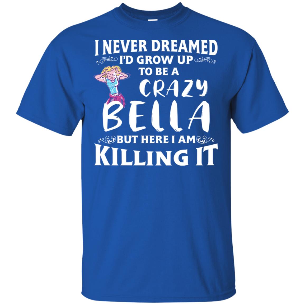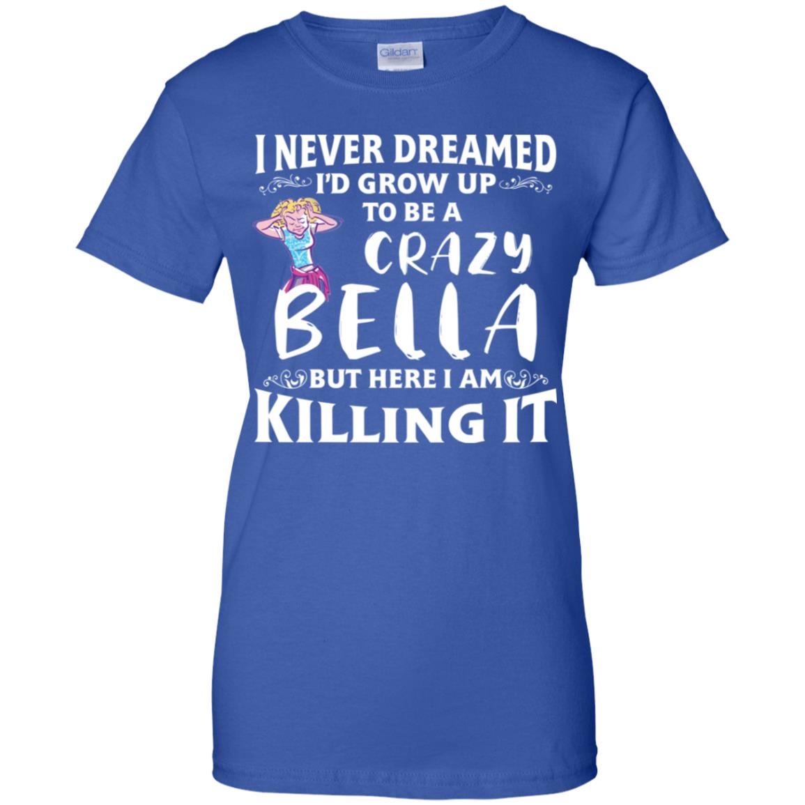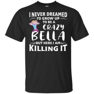 This isn’t just any ordinary tee; it’s a statement piece, a conversation starter, and a fun way to express your identity. The full phrase, “I Never Dreamed I’d Grow Up To Be a Crazy Bella, But Here I Am Killing It,” is a humorous and empowering message. It acknowledges that life might not have gone exactly as planned, perhaps taking a more unpredictable or “crazy” turn, but ultimately celebrates the success and confidence gained along the way. Wearing this Crazy Bella Shirt is a bold declaration that you are thriving, living life on your own terms, and absolutely “killing it” in everything you do, despite perhaps being perceived as a little unconventional. It’s a perfect blend of humor, confidence, and self-acceptance encapsulated in one design.