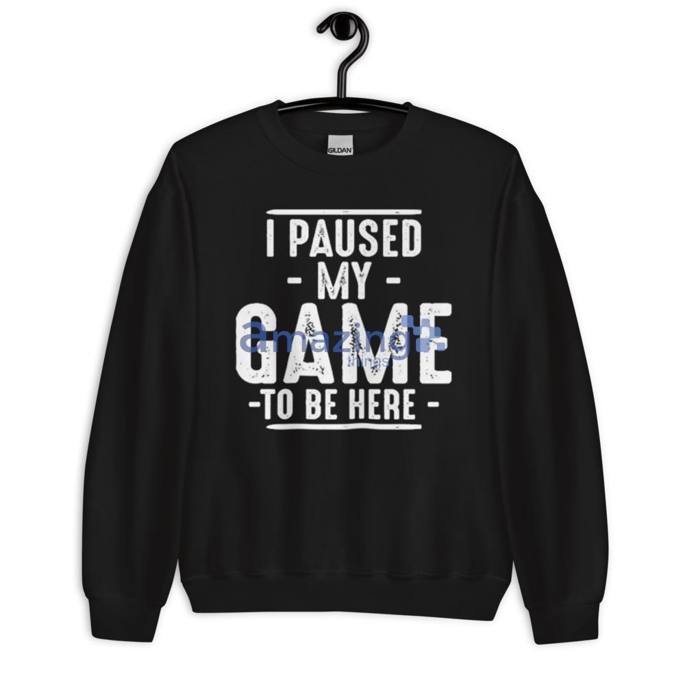 But what really sets this shirt apart is the bold and eye-catching graphic emblazoned across the chest. Featuring the playful message “I Paused My Game To Be Here,” this shirt is the perfect way to showcase your love of gaming in a fun and lighthearted way.