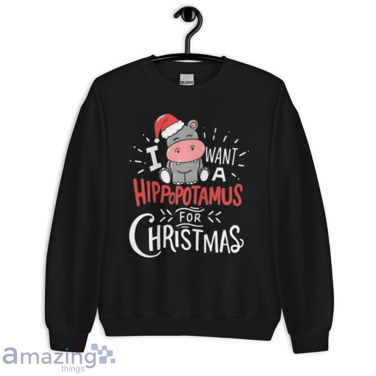 I Want A Hippopotamus For Christmas Xmas Santa Hippo Shirt Details