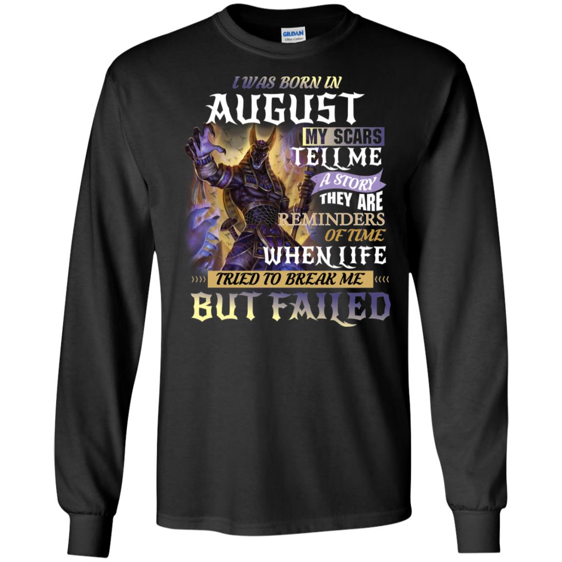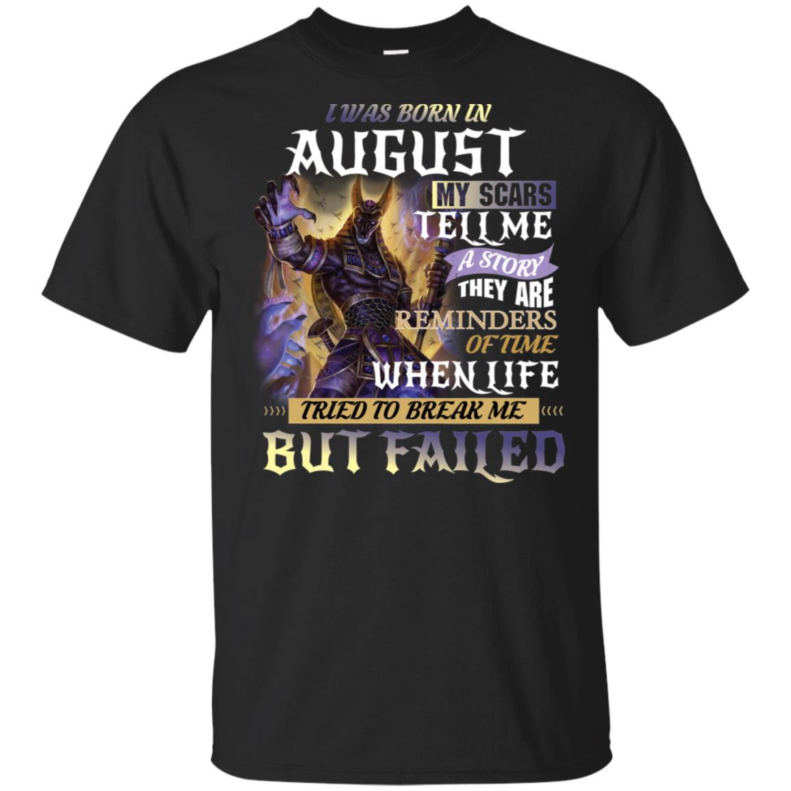 The “I Was Born In August My Scars Tell A Story They Are A Reminder Of Times When Life Tried To Break Me But Failed Shirt” is available in a variety of popular styles to suit different climates and preferences. You can choose from: