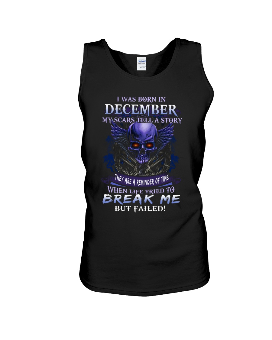 Celebrate Resilience: The I Was Born In December My Scars Tell A Story | Skull Birthday Shirt
