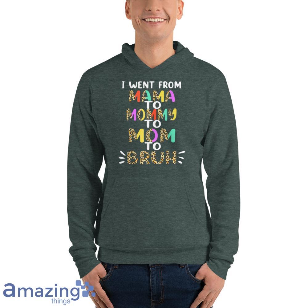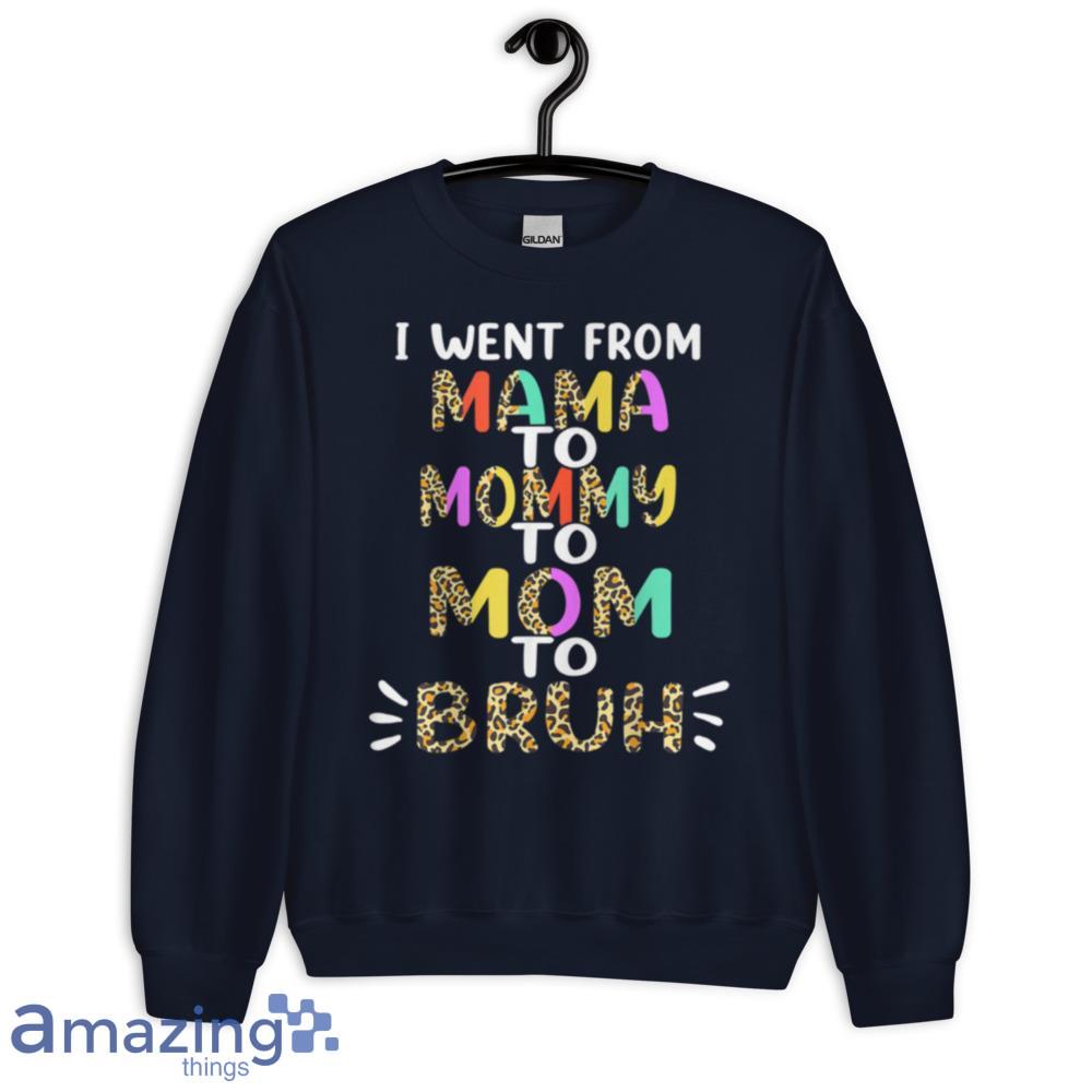 Whether you’re a new mom, a seasoned pro, or somewhere in between, this shirt is the perfect way to show off your pride in being a mother. The fun and playful design features the words “I Went From Mama To Mommy To Mom To Bruh” in bold, eye-catching letters, making it a great conversation starter wherever you go.