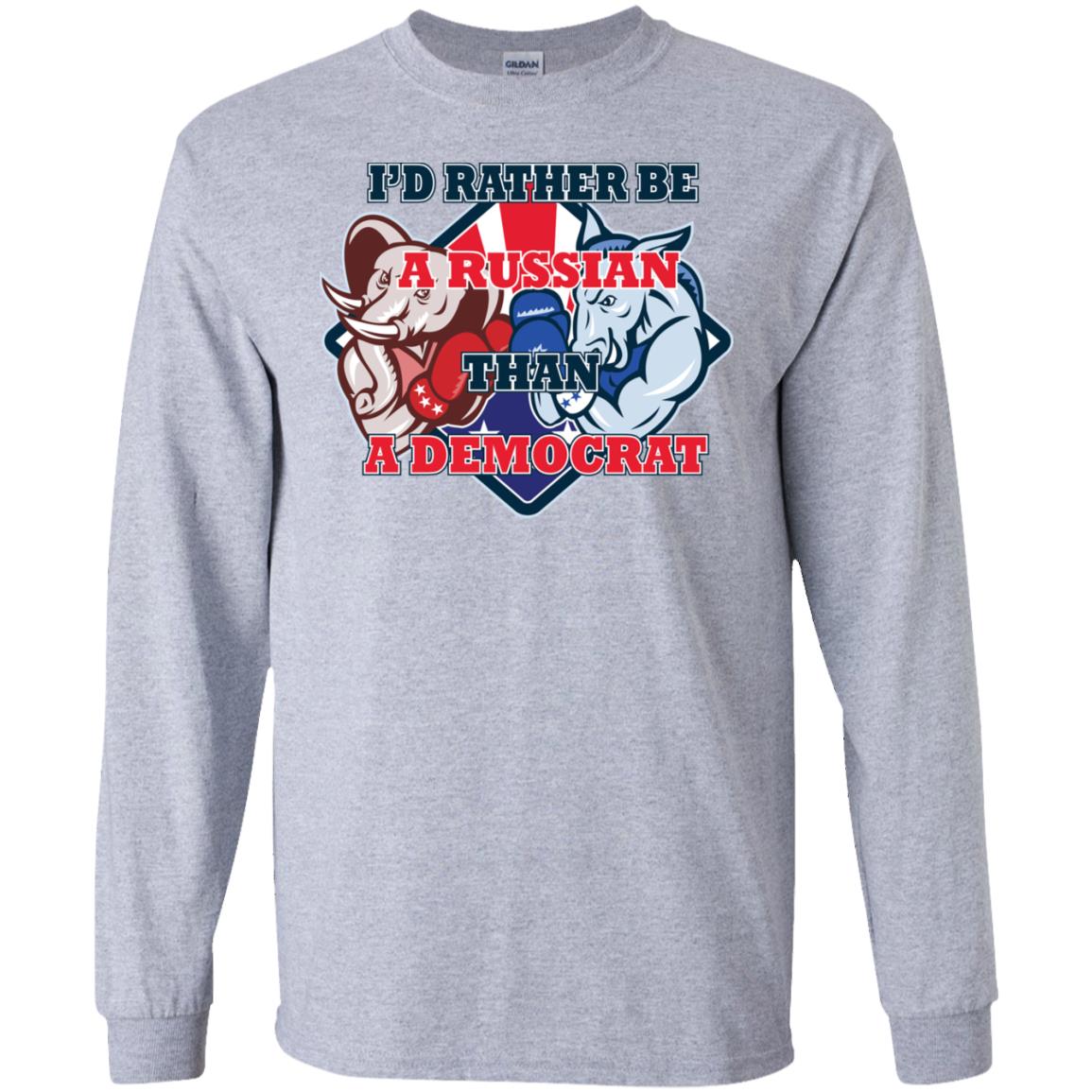 Apparel as a form of political expression continues to thrive, offering individuals a tangible way to showcase their beliefs. The “I’d Rather Be A Russian Than A Democrat Shirt” is a prime example of this, delivering a powerful and unambiguous message. Available as a t-shirt, hoodies, long sleeve shirt, and sweatshirt, this item allows wearers to choose their preferred style while broadcasting their strong political stance. For those ready to make this bold declaration, these apparel options provide the perfect medium.Explore the available styles and find the I’d Rather Be A Russian Than A Democrat Shirt that fits your preference today.
