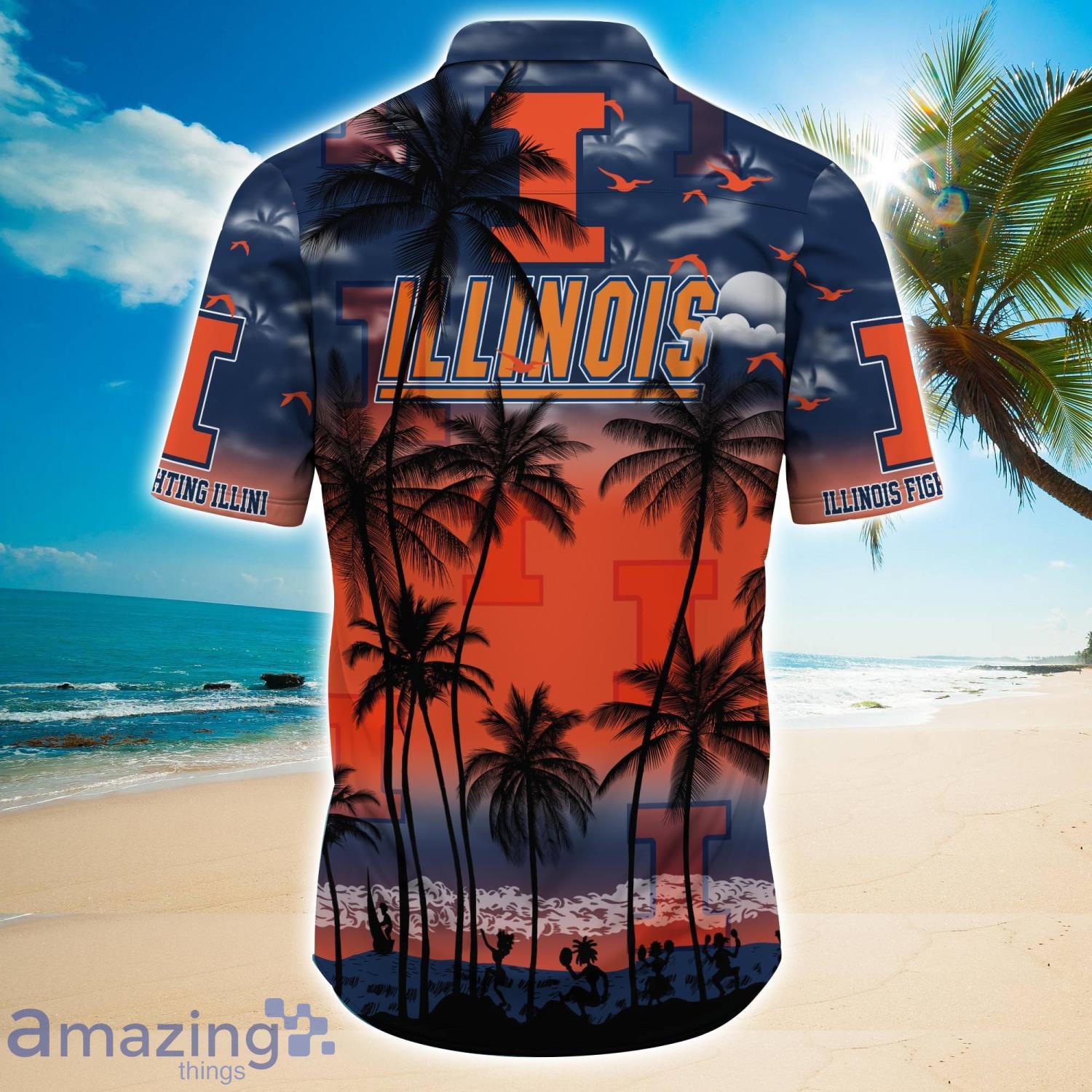 Illinois Fighting Illini 2023 Trending Aloha Hawaiian Shirt Summer Gift For Beach Lover Details: