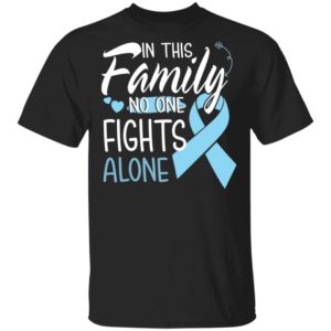 The phrase “In This Family No One Fights Alone” resonates deeply with the reality of facing a health challenge like cancer. It encapsulates the commitment of family and loved ones to stand together, offering emotional, physical, and spiritual support throughout the treatment and recovery process. Wearing this Prostate Cancer awareness shirt isn’t just about apparel; it’s a public declaration that the fight against cancer is a shared battle.