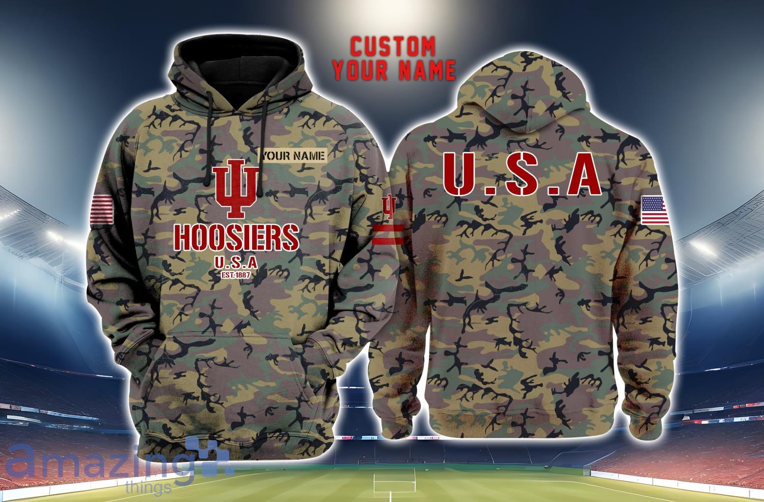 Indiana Hoosiers 3D Printing Army Camo Pattern Unisex Hoodies Custom Name For Fans Information