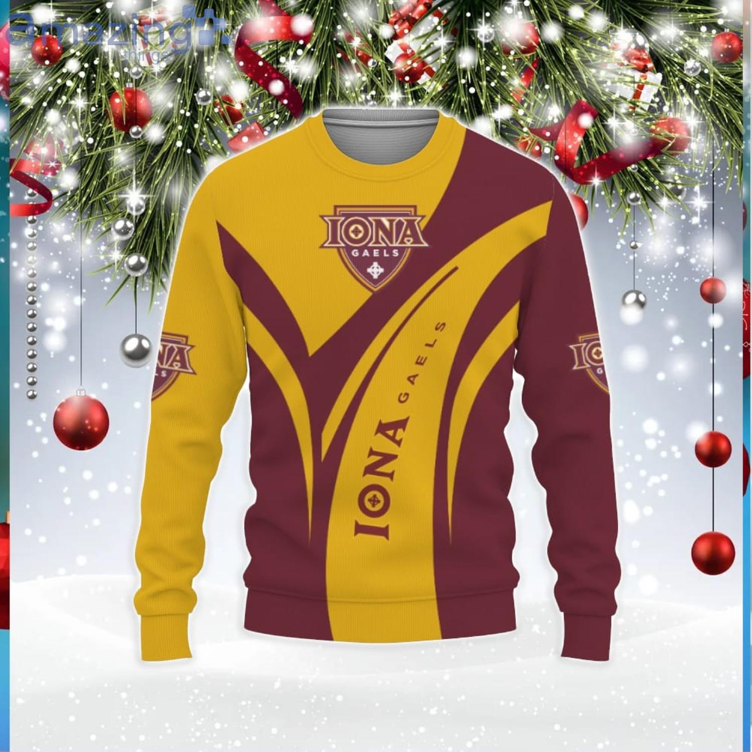 Not only is this sweater a great addition to your game-day outfit, but it also makes for a thoughtful Christmas gift. Surprise your loved ones with a present that truly represents their passion for the Iona Gaels. They’ll be thrilled to receive such a unique and meaningful gift.