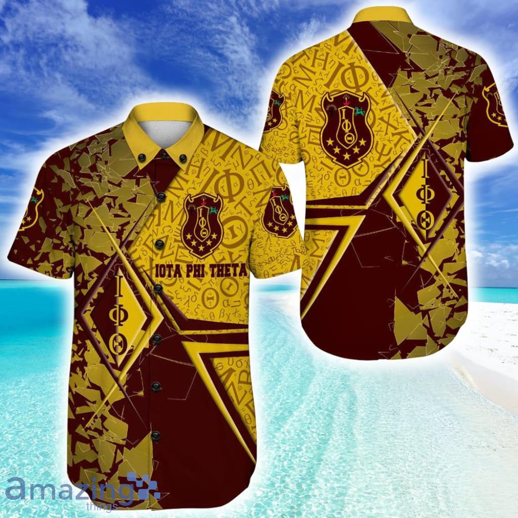 Crafted with meticulous attention to detail, our Iota Phi Theta Legend Hawaiian Shirt showcases the iconic symbols and colors of the fraternity, allowing you to proudly display your affiliation. The vibrant pattern, featuring the fraternity’s crest and letters, is sure to turn heads and spark conversations wherever you go.