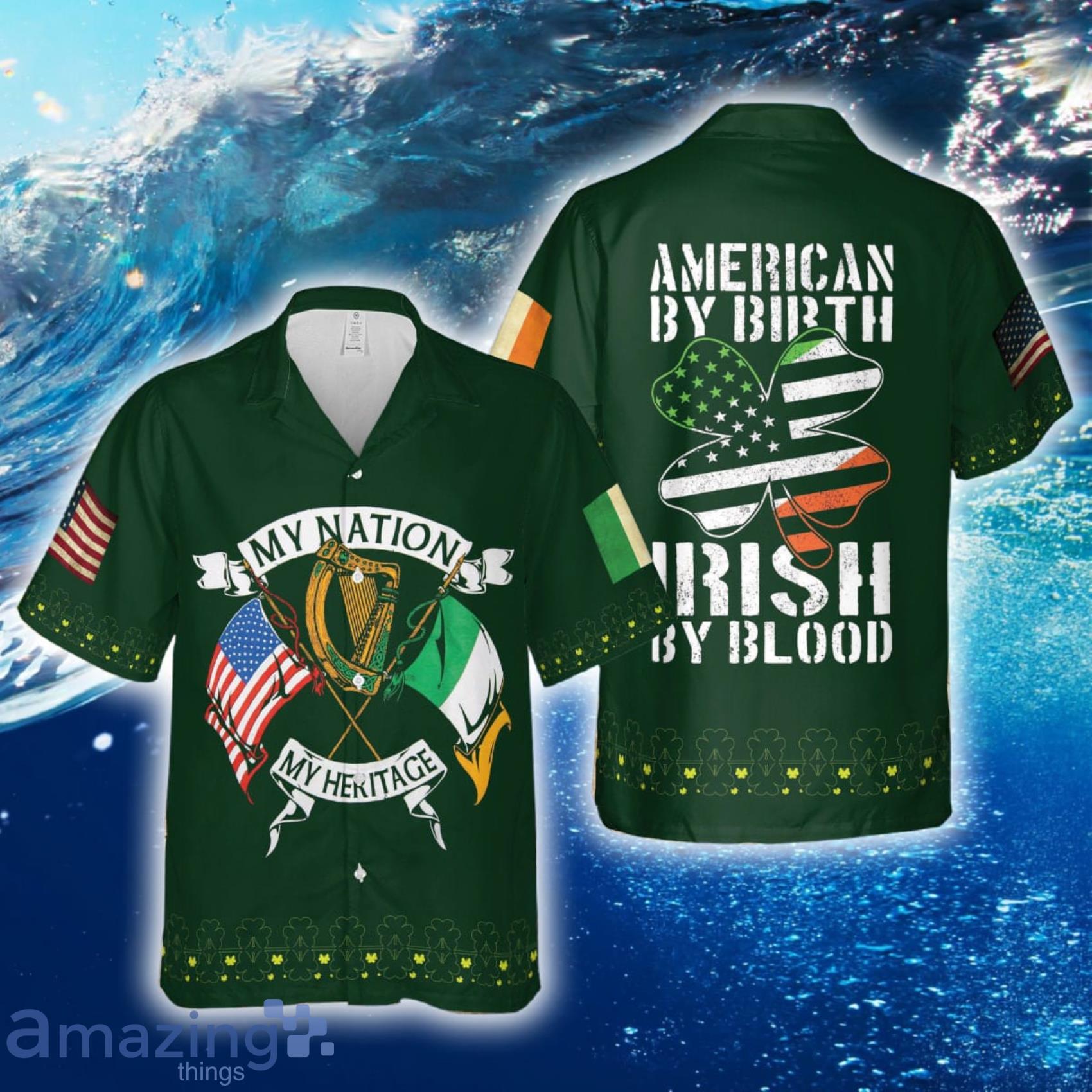 This design is available in a combo Hawaiian shirt & shorts. You can also get it separate. The default option is only one shirt or one pair of shorts. You have chosen a combo to get them both. This combo Irish My Nation American By Birth Irish By Blood Hawaiian Shirt And Short is perfect to go to the beach. Get yours now or make a great gift.
