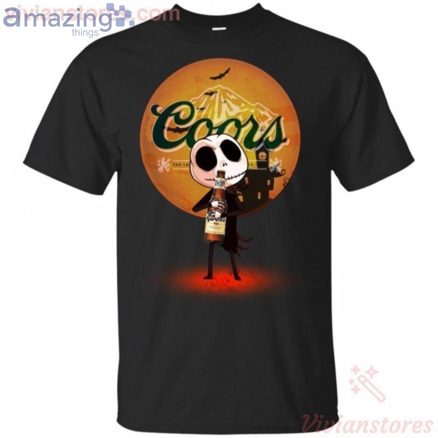 Jack Skellington Hold Coors Banquet Beer Halloween T-Shirt Details