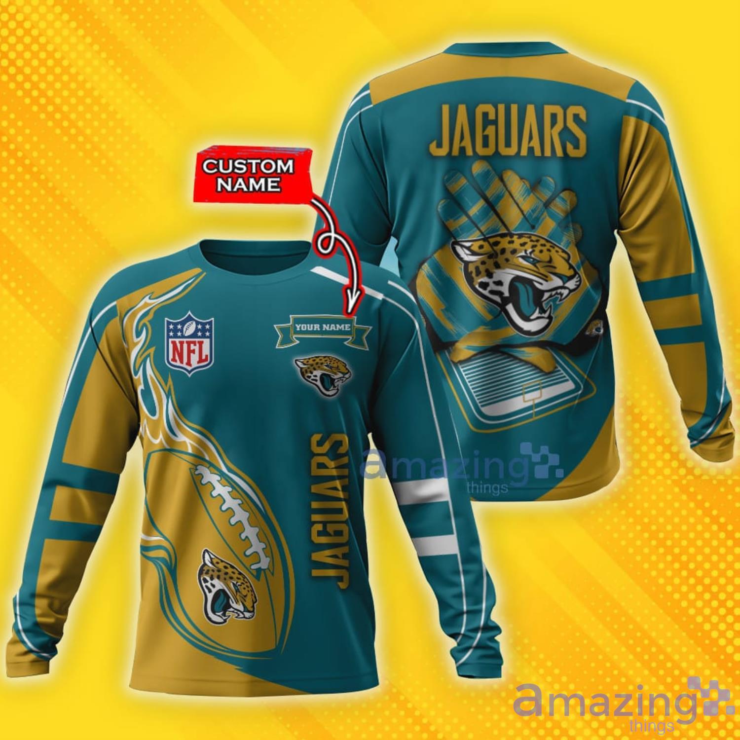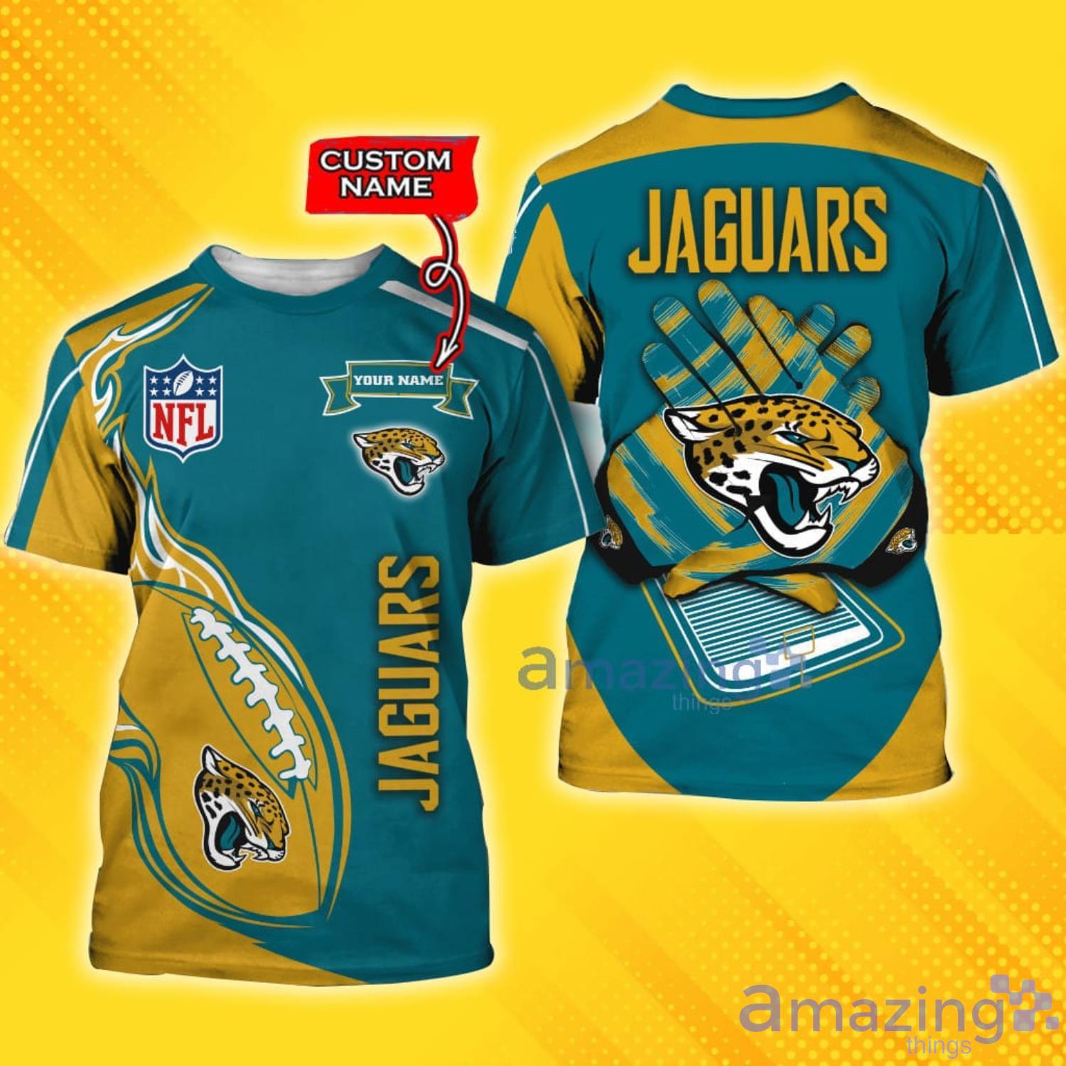 Perfect design for holiday. Get yours this shirt or this is a cute item for your daddy, gift for your mom, and gift for friends on any occasion. buy a cute Jacksonville Jaguars Custom Name For Sport Fans All Over Printed 3D Shirt now.