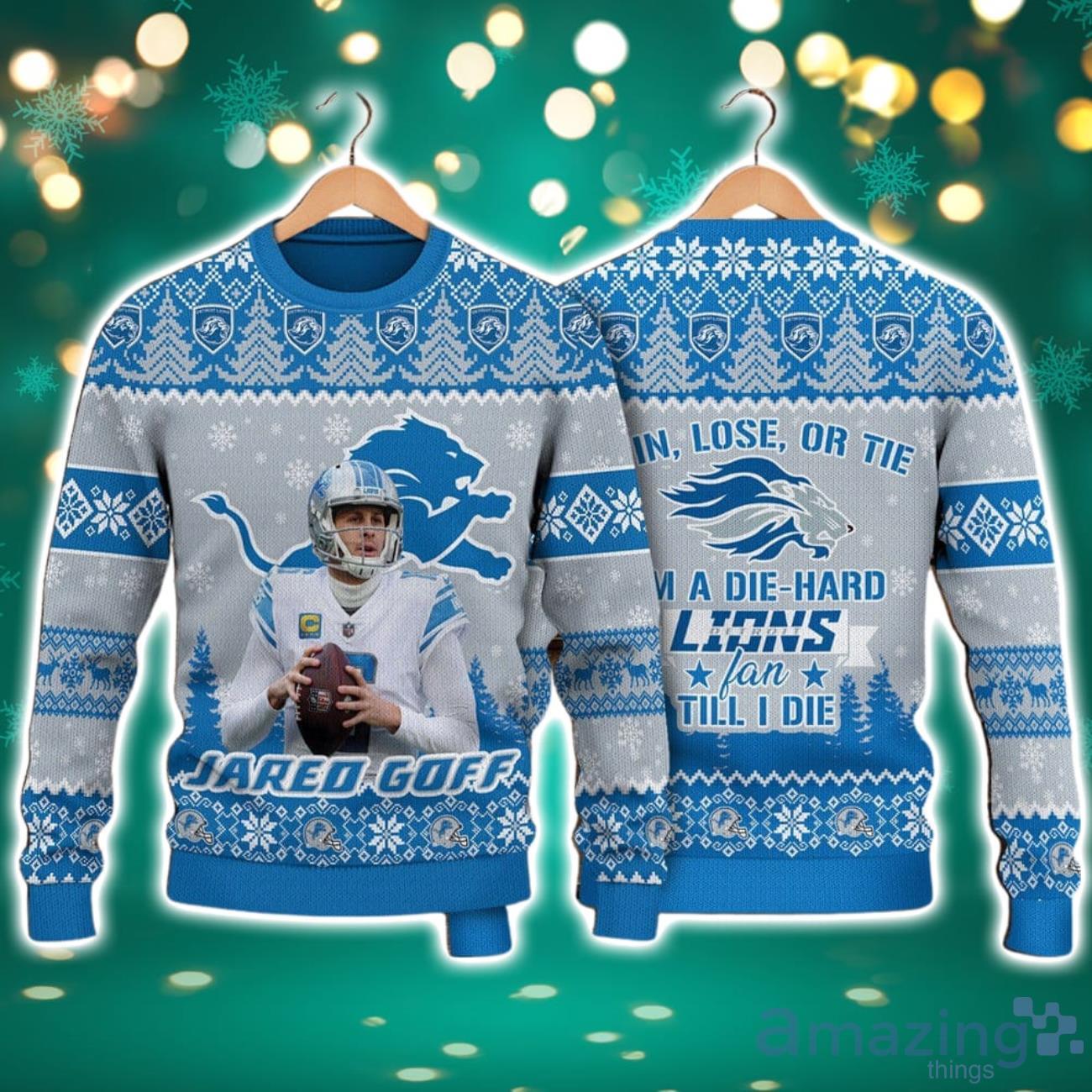 Jared Goff Detroit Lions I Am A Die Hard Lions Fan Till I Die NFL Christmas Ugly Sweater Informations: