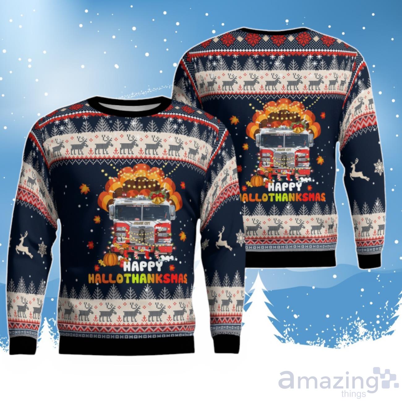 Jersey City Fire Dept Happy Hallothanksmas Ugly Christmas Sweater – Gift For Christmas Day Informations: