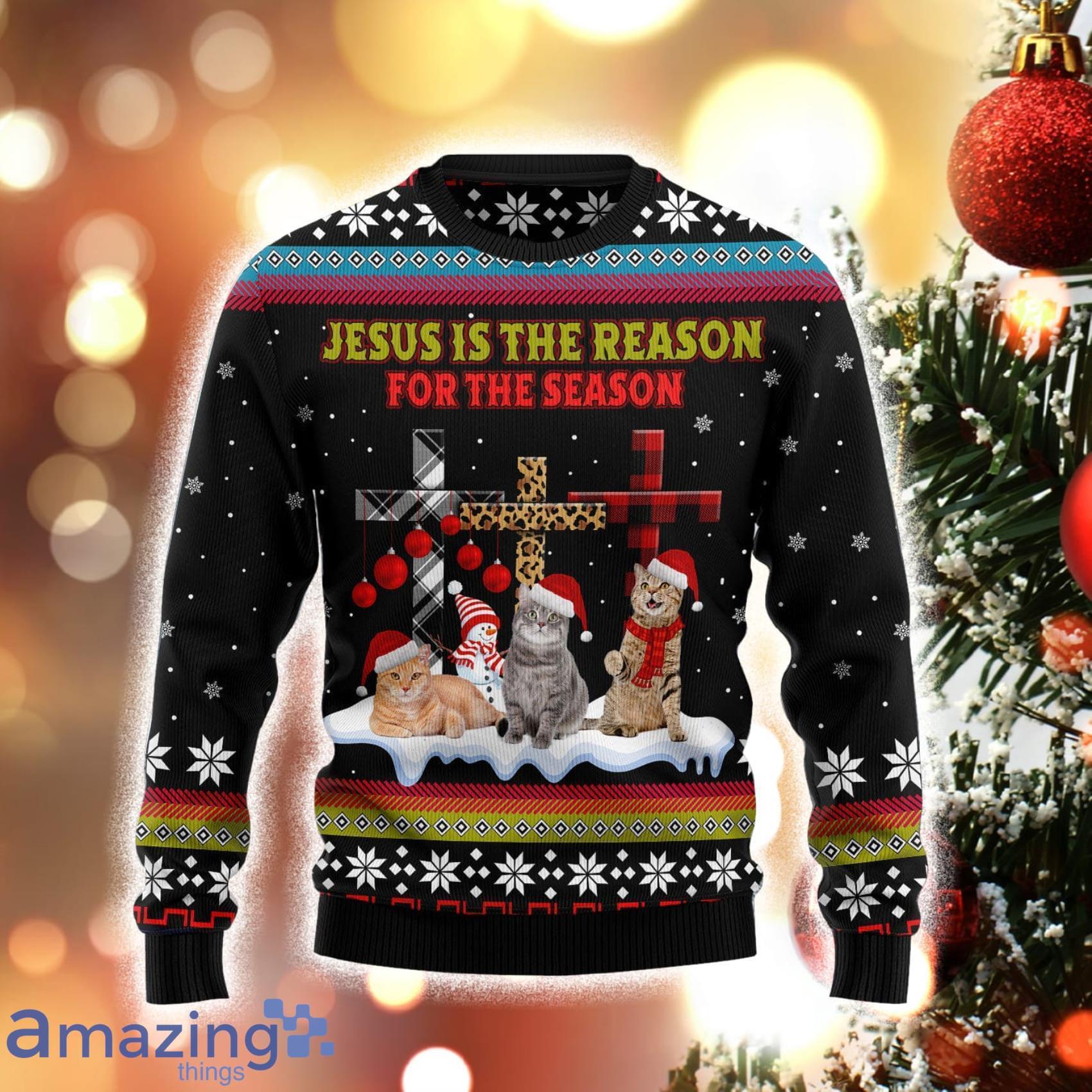 Jesus Is The Reason For The Season Cat Black Christmas 3D Sweater