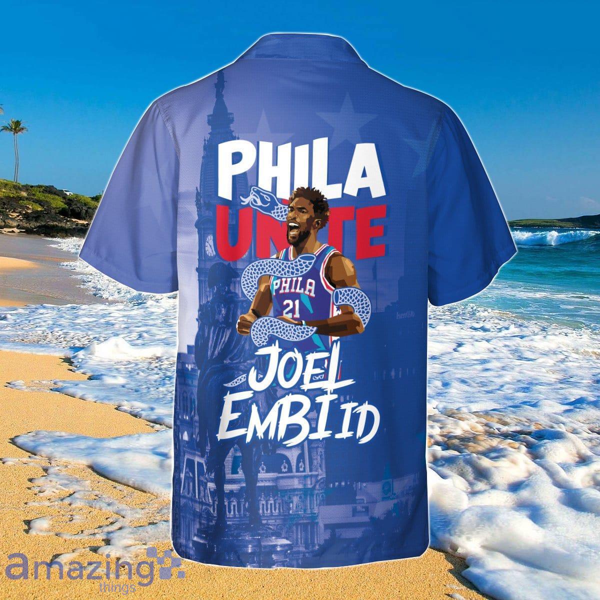 Don’t miss out on the opportunity to own this unique and stylish shirt. Order yours today and show off your love for Joel Embiid and the Philadelphia 76ers in the most fashionable way possible!