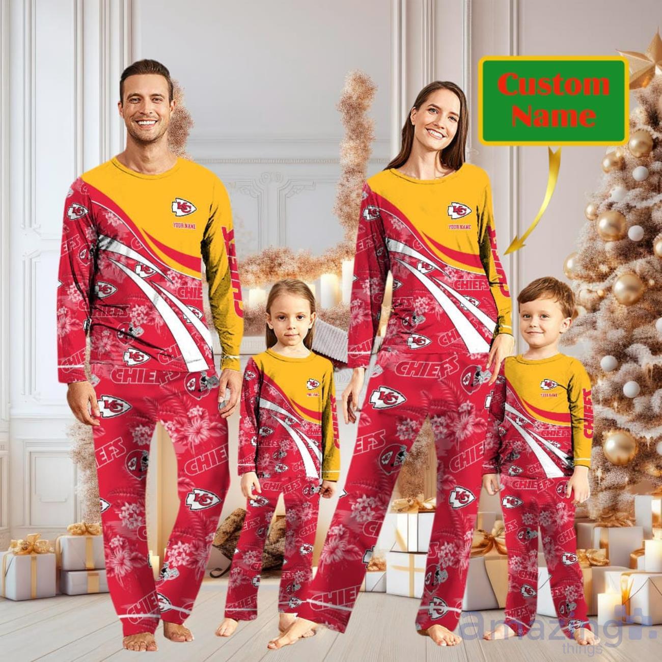 Some of the Kansas City Chiefs Custom Name Christmas Pajamas For Fans photos