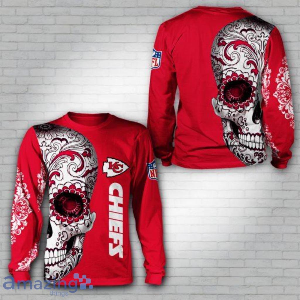 The Kansas City Chiefs Floral Skull All Over Print 3D Sweatshirt is the ultimate gift for big fans of this iconic football team. Show off your team pride in style with this eye-catching sweatshirt that boasts a stunning floral skull design. Crafted with meticulous attention to detail, this sweatshirt features a high-quality all-over print that truly sets it apart from the rest.