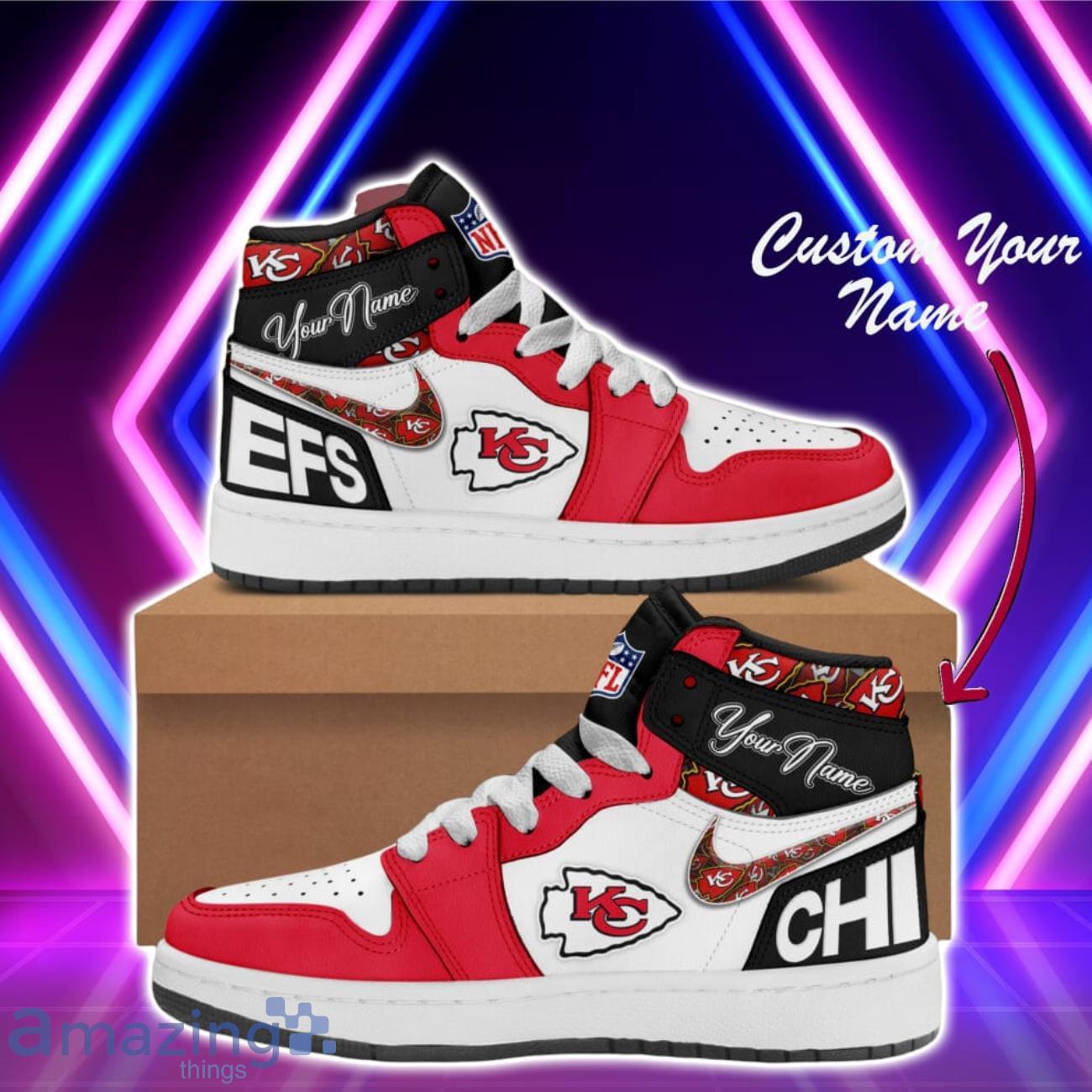 Gear up in style and show off your team pride with these Kansas City Chiefs NFL Air Jordan High Top Fashionable Sneakers. These custom name sneakers are perfect for die-hard sport fans who want to stand out from the crowd. Made with premium materials and featuring the iconic Air Jordan design, these sneakers are both stylish and comfortable. Whether you’re hitting the gym or cheering on your favorite team on game day, these sneakers are sure to make a statement. Get your hands on these exclusive kicks and show your support for the Kansas City Chiefs in style.