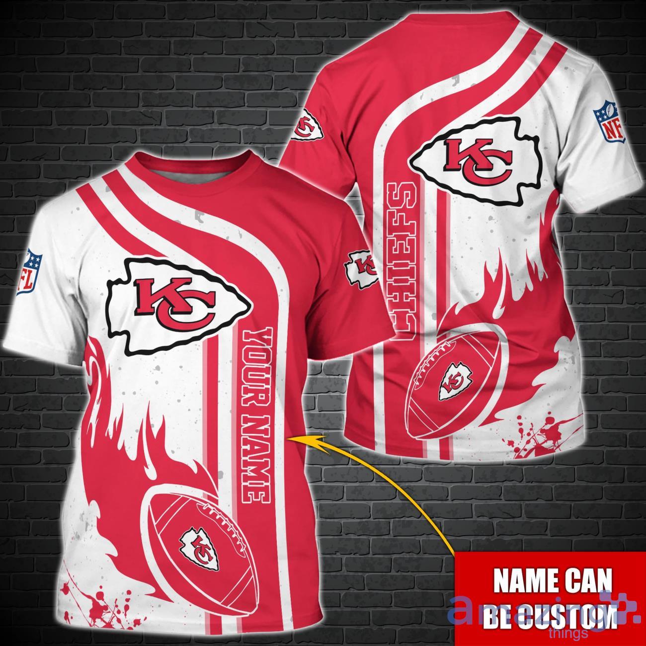 Crafted from high-quality materials, this shirt combines comfort and durability, ensuring it can withstand all the excitement of cheering for your favorite team. The iconic Kansas City Chiefs logo takes center stage, proudly displaying your loyalty for all to see. But what makes this t-shirt truly special is the custom name feature.