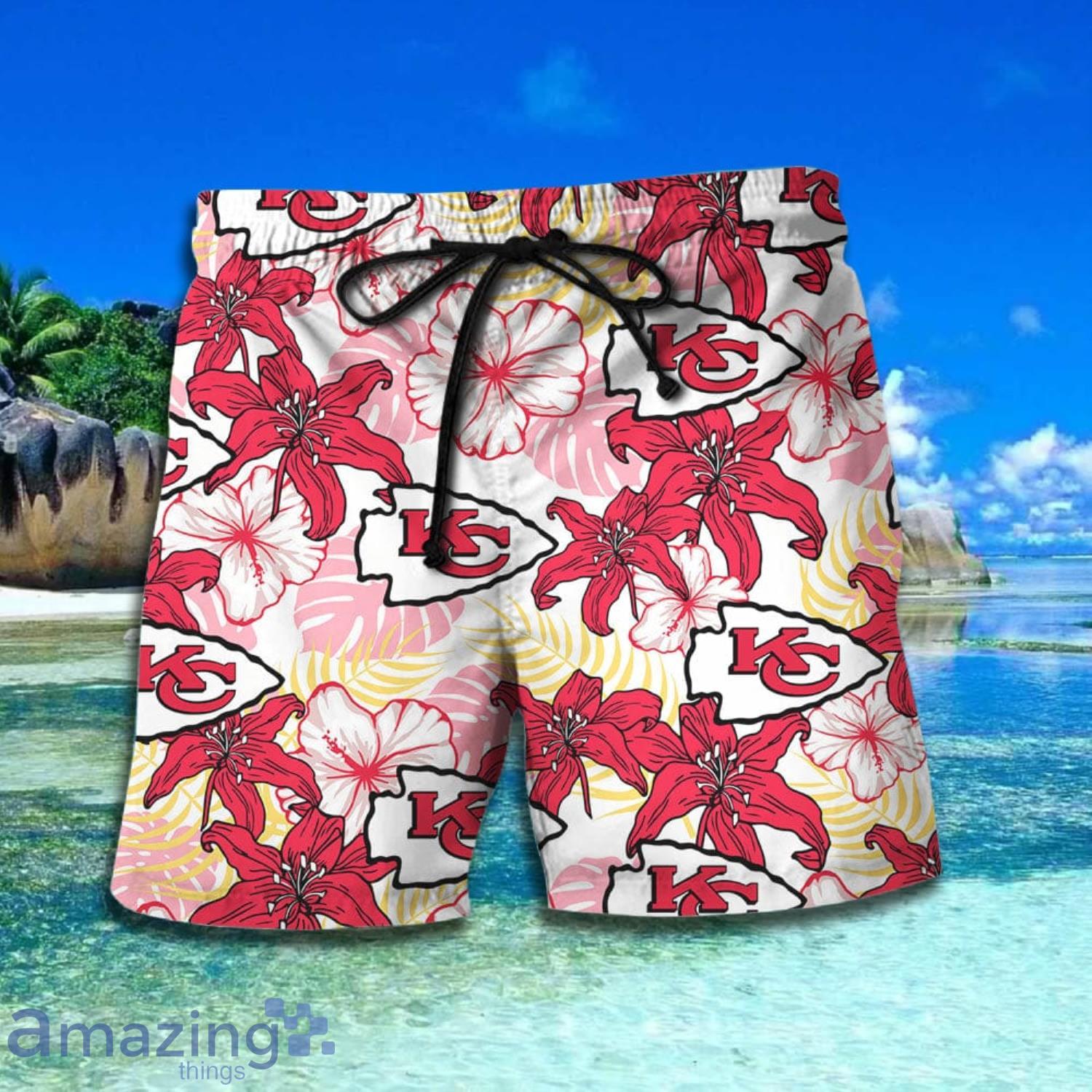 Some of the Kansas City Chiefs NFL Red Tropical Pattern Short Sleeve Hawaiian Shirt And Short photos