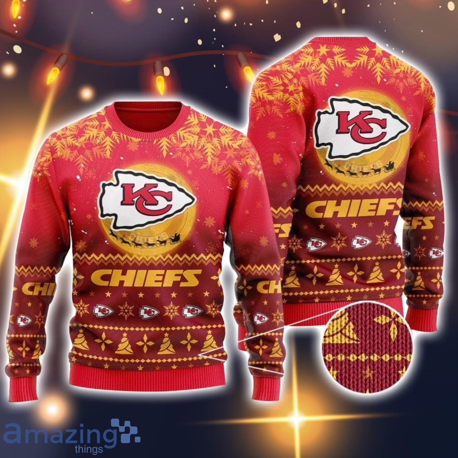 Embrace the holiday season in style with our Kansas City Chiefs Sweater Santa Claus In The Moon Christmas 3D Christmas Sweater. Order yours today and be the envy of everyone this Christmas!