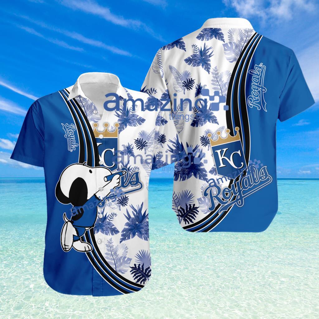 Kansas City Royals Logo Snoopy Pattern Tropical Button Down Hawaiian Shirt