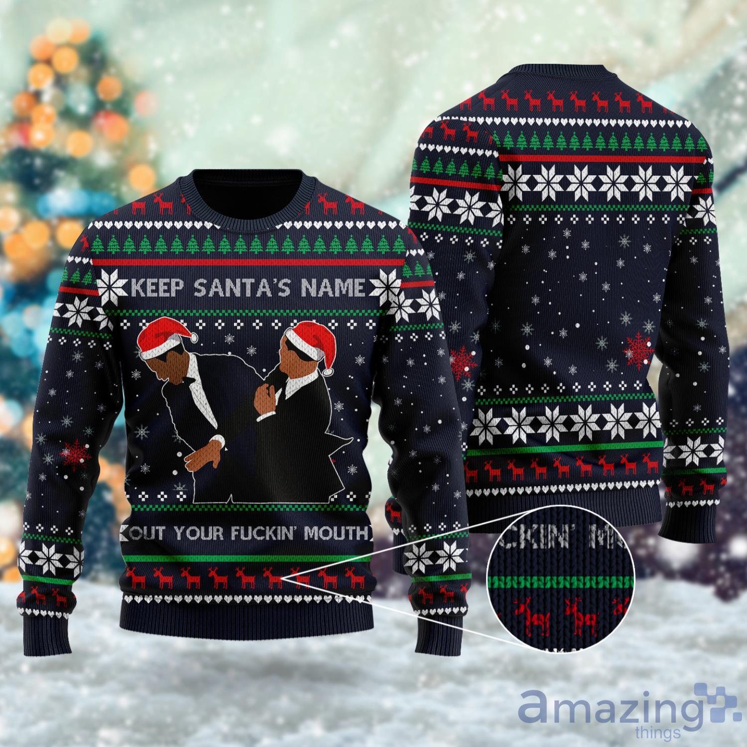 Keep Santa’s Name Out Your Fuckin’ Mouth 3D T-shirt, Slap Meme Ugly Christmas Sweater Men And Women Gift