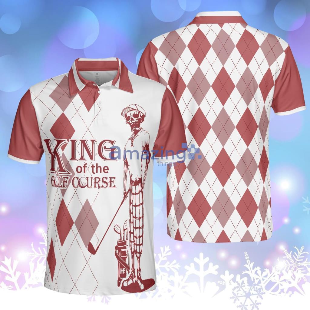 King Of The Golf Course Golf Polo Shirt Red Argyle Pattern Skeleton Golfer Polo Shirt