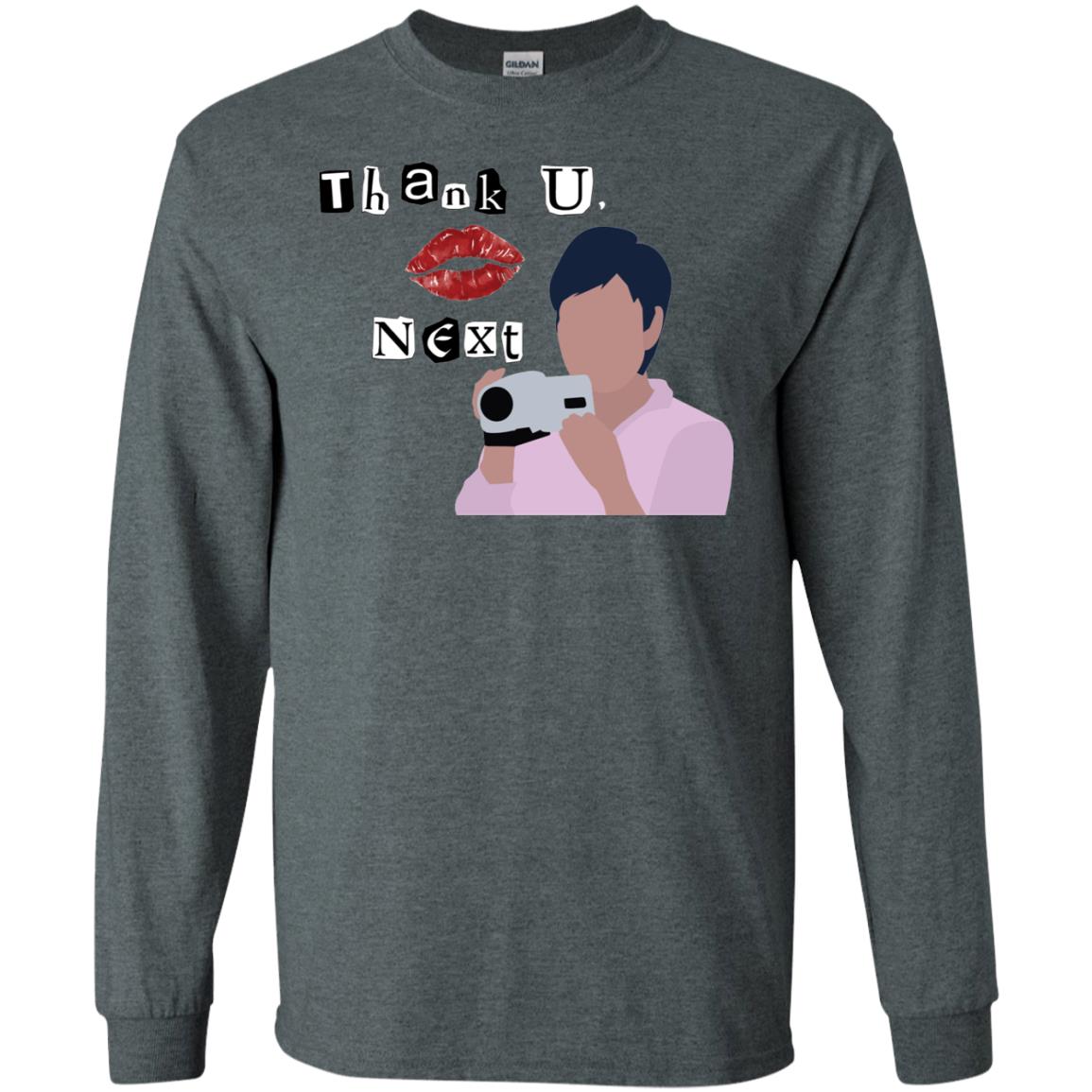 Explore our selection to find the perfect size and style for you. Whether you prefer the lighter feel of a long sleeve t-shirt or the warmth of a hoodie, you can embrace the “Thank U Next” attitude with these unique pieces of apparel.