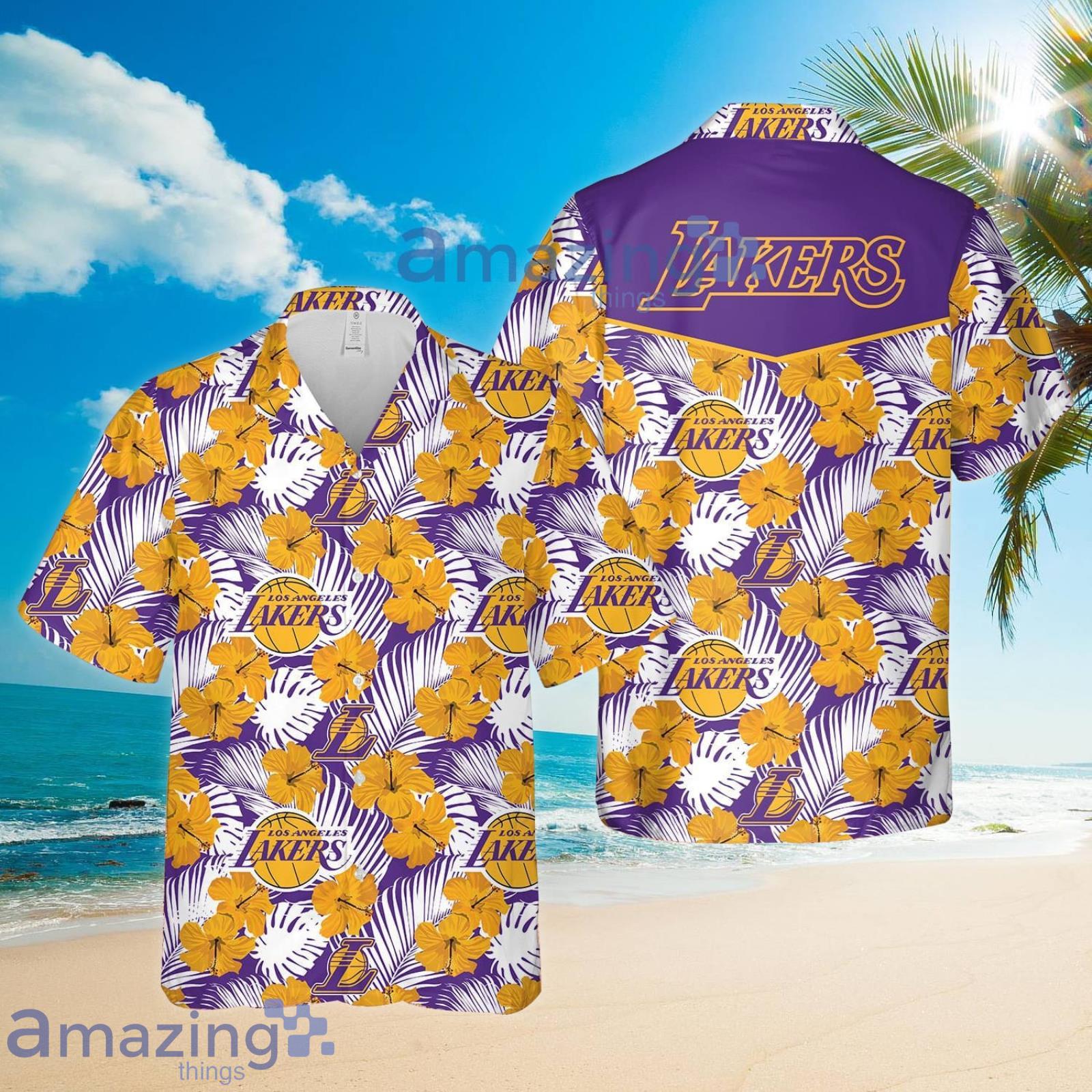 Lakers Hibiscus Summer Set Hawaiian Shirt And Shorts Details: