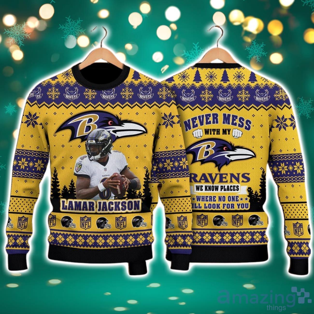 Lamar Jackson Baltimore Ravens Never Mess With My Ravens NFL Christmas Ugly Sweater Informations: