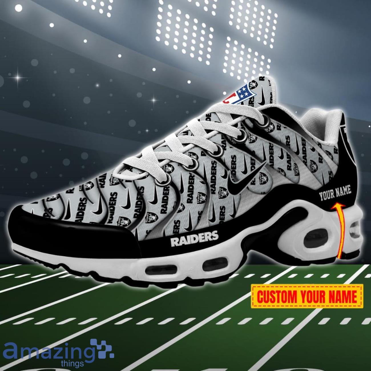 Some of the Las Vegas Raiders NFL Pattern Swoosh Custom Name Air Cushion Sport Shoes photos