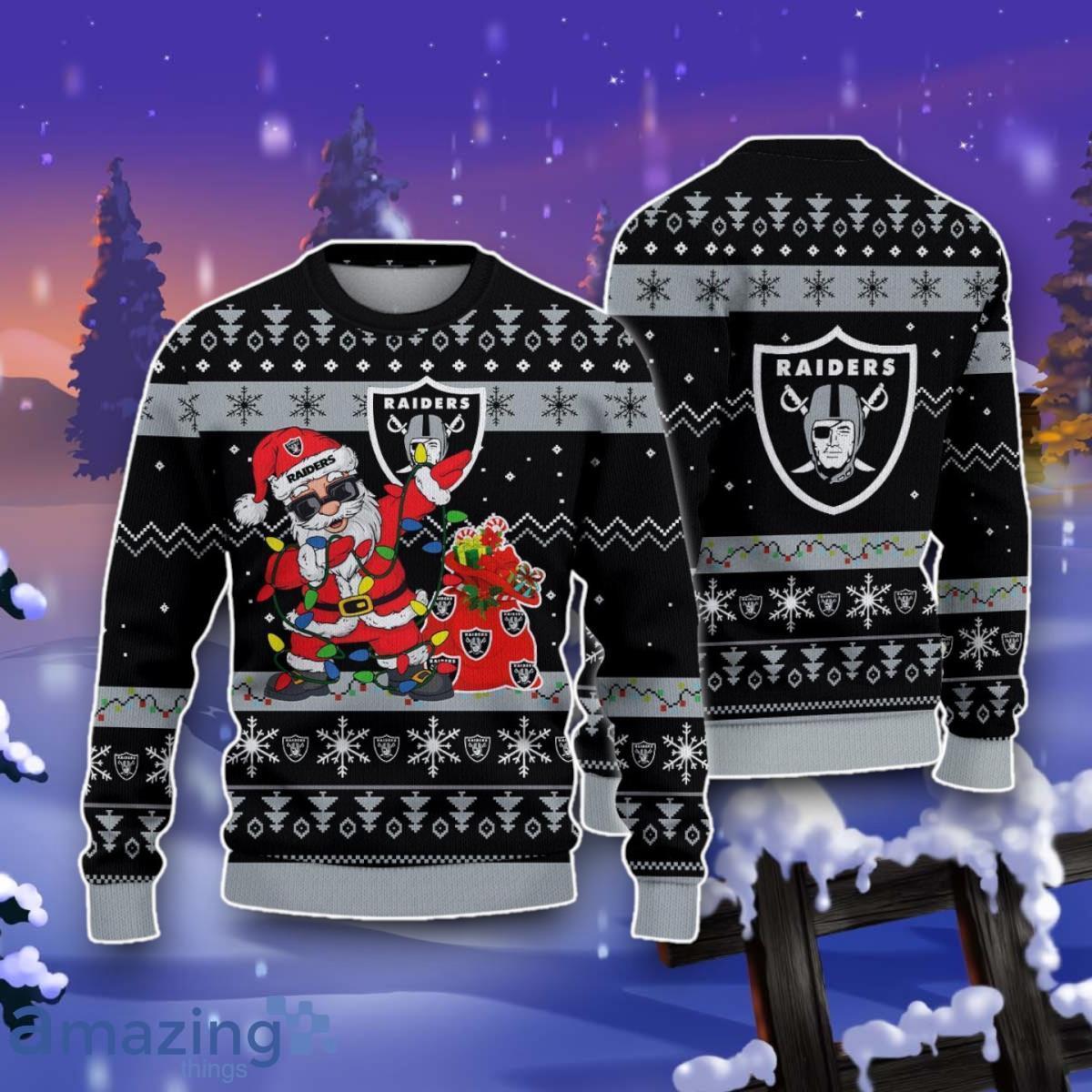 Some of the Las Vegas Raiders Santa Claus Ugly Christmas 3D Sweater Impressive Gift photos