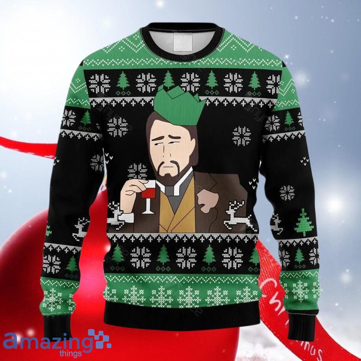 Featuring the iconic Leonardo DiCaprio drinking meme, this sweater captures the essence of the holiday spirit in a fun and quirky way. The vivid colors and high-quality print ensure that the meme comes to life, making it a conversation starter wherever you go.