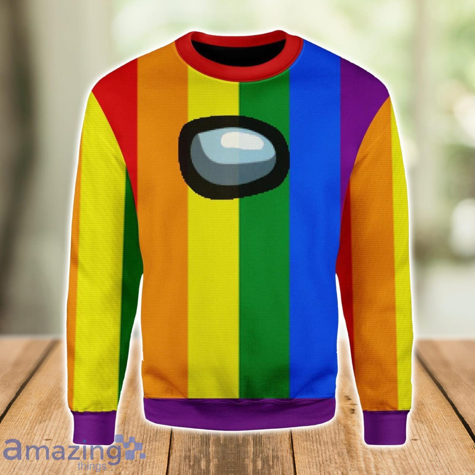 Crafted with love and attention to detail, this Christmas sweater features a playful design inspired by the popular game Among Us, incorporating the iconic rainbow colors of the LGBT community. It’s not just a sweater; it’s a statement of inclusivity and acceptance.