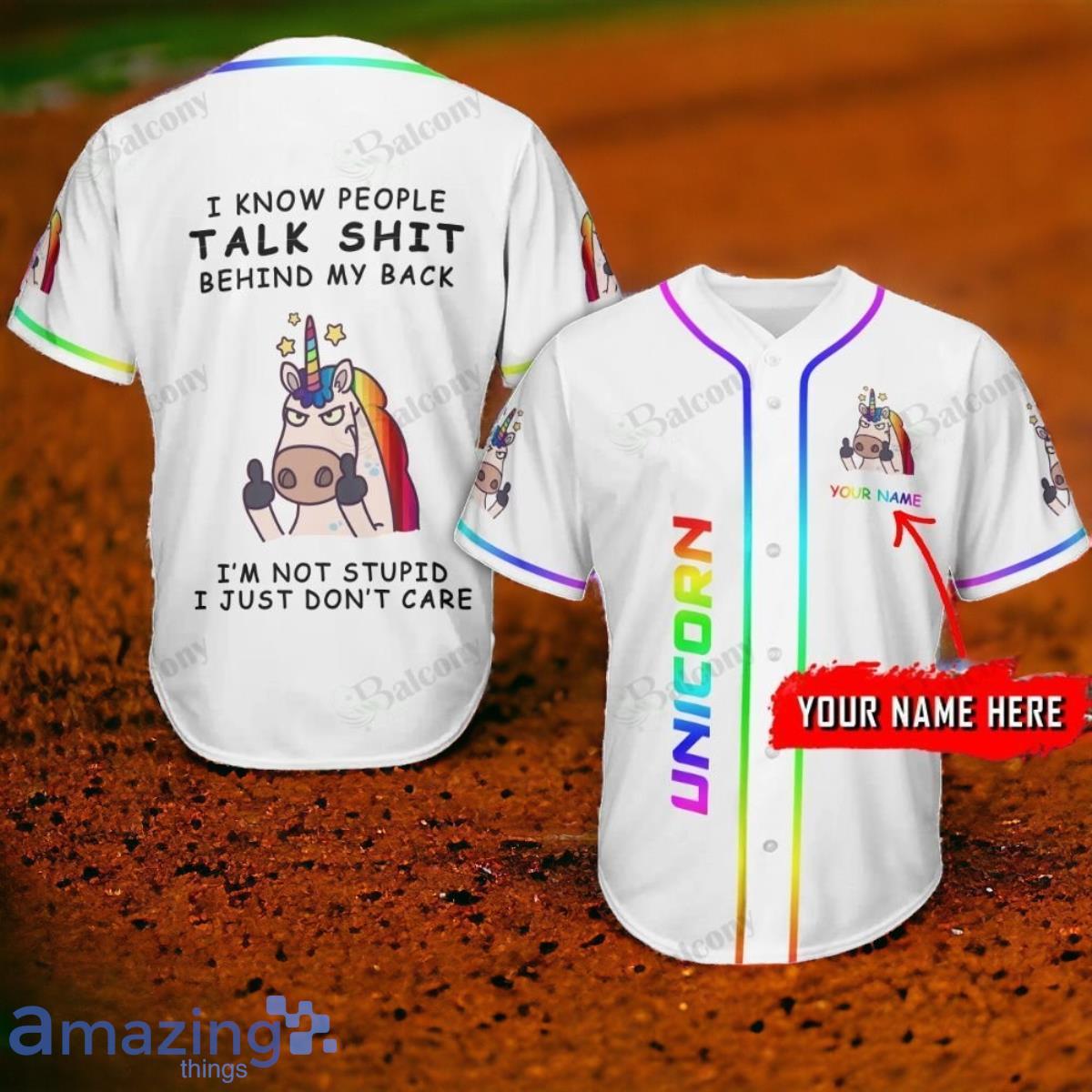 LGBT Unicorn Talk Shit Behind My Back Custom Name Baseball Jersey Shirt Style Gift
