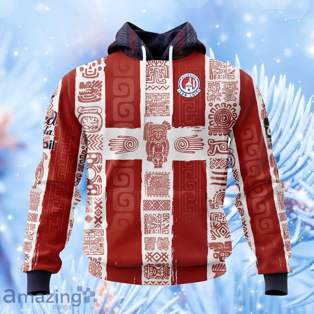 Don’t miss out on this must-have piece for any Liga Mx Atlético San Luis fan. Order your Aztec Design Sporty Hoodie today and show off your team spirit in style!