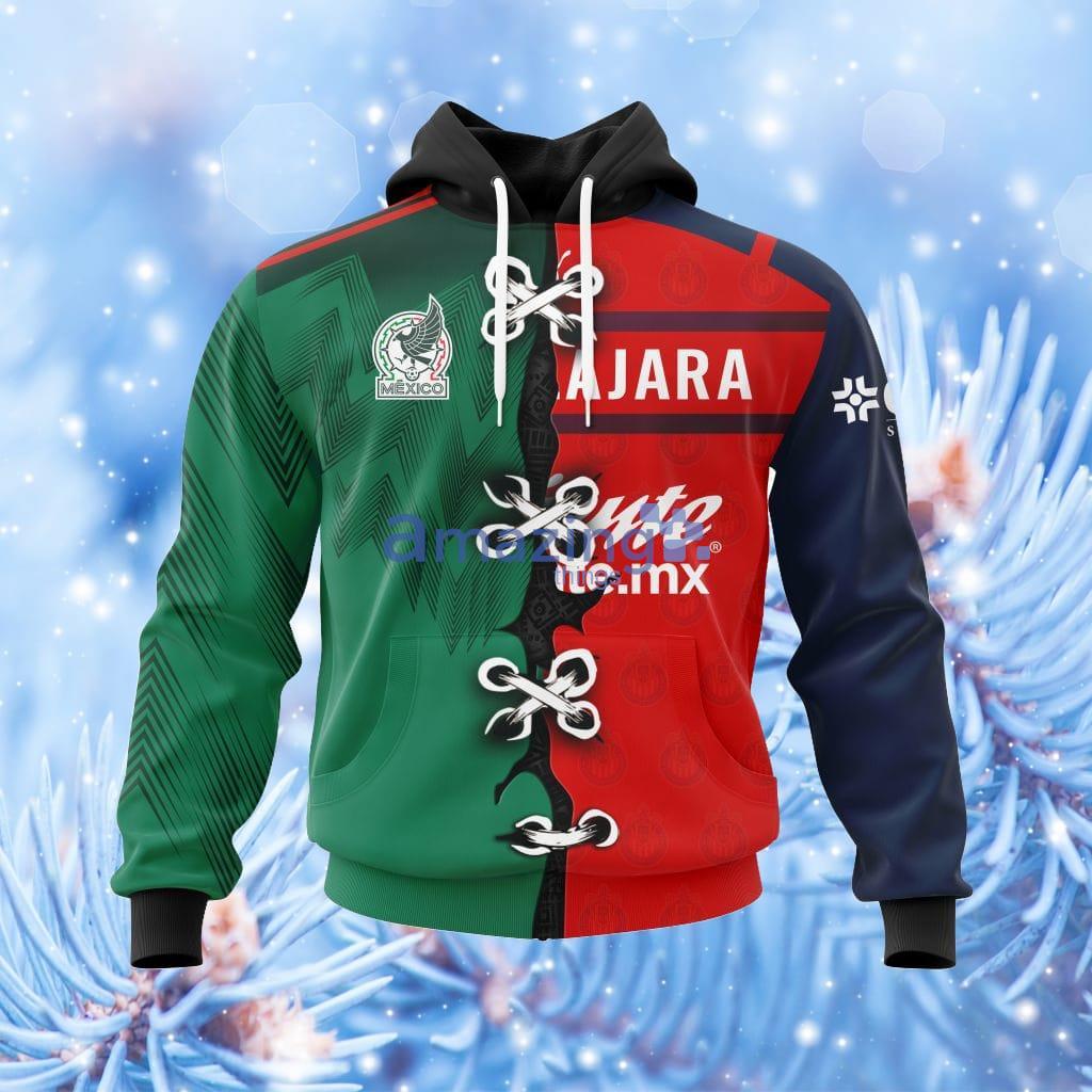Show your support for your favorite Liga Mx club with the Liga Mx Club Chivas Guadalajara Third Mix Mexico Hoodie! This unique piece features a striking 3D all-over print design that will make you stand out in the crowd. Made with high-quality materials, this hoodie is not only stylish but also comfortable to wear. Whether you’re at the game or just out and about, this hoodie is the perfect way to show off your team pride. Don’t miss out on this must-have piece for any true Chivas Guadalajara fan!