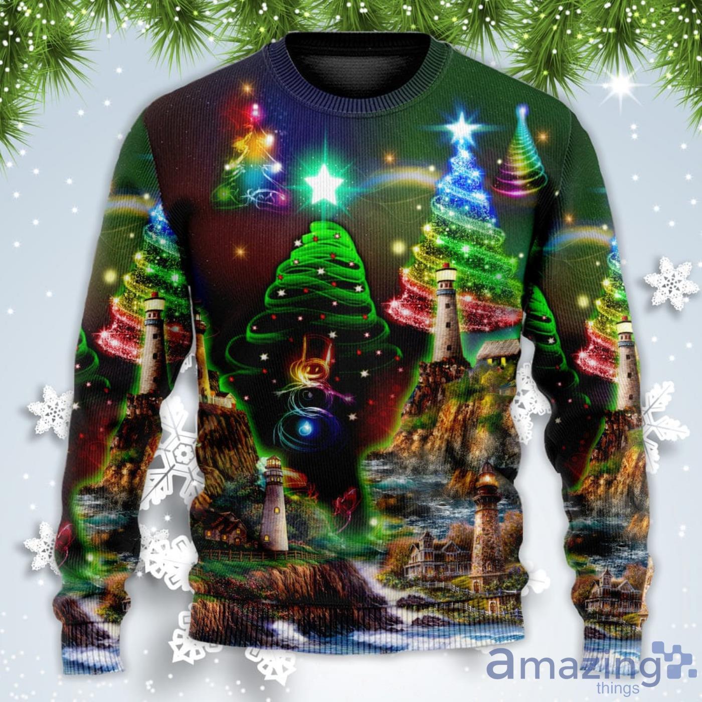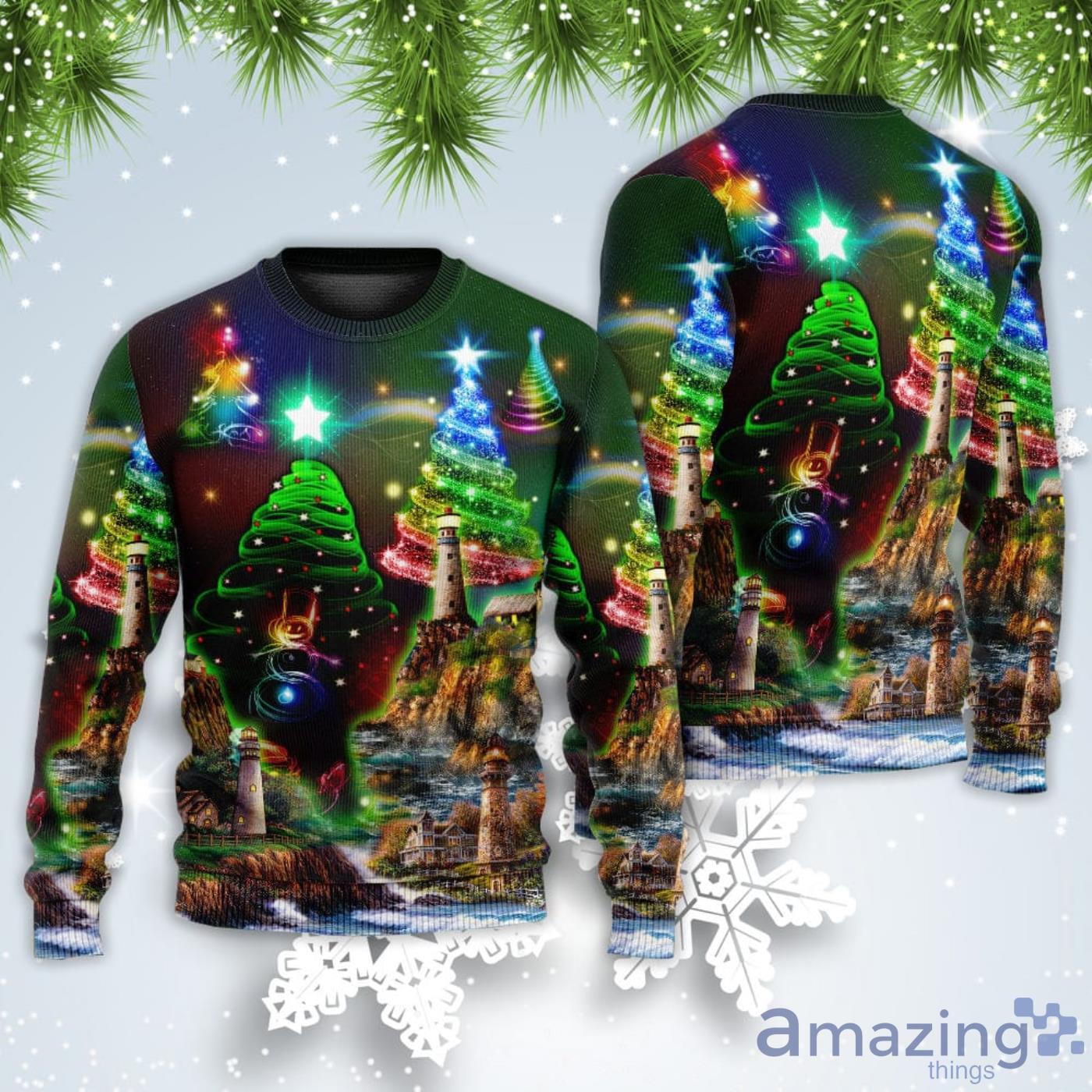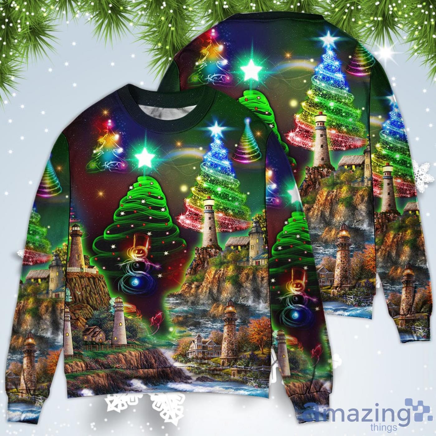 Some of the Lighthouse And Merry Happy Christmas Sweatshirt Sweater photos