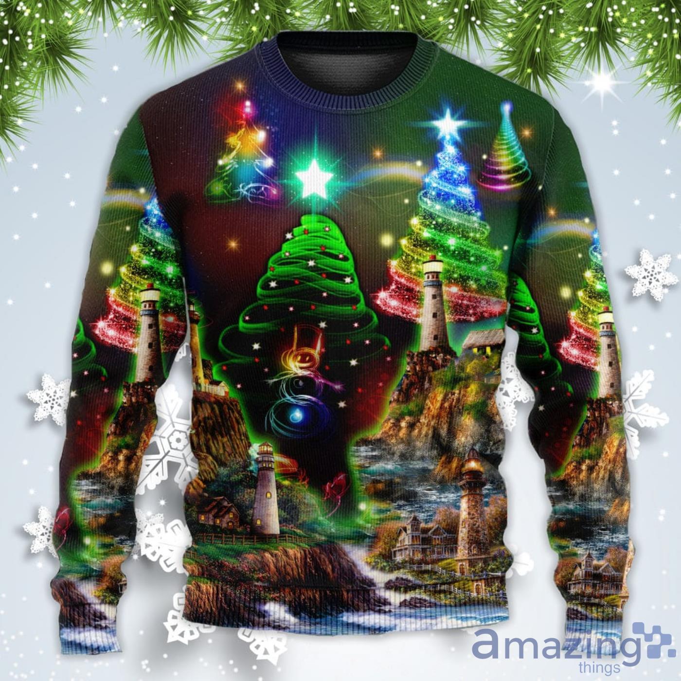 Lighthouse And Merry Happy Christmas Sweatshirt Sweater Informations: