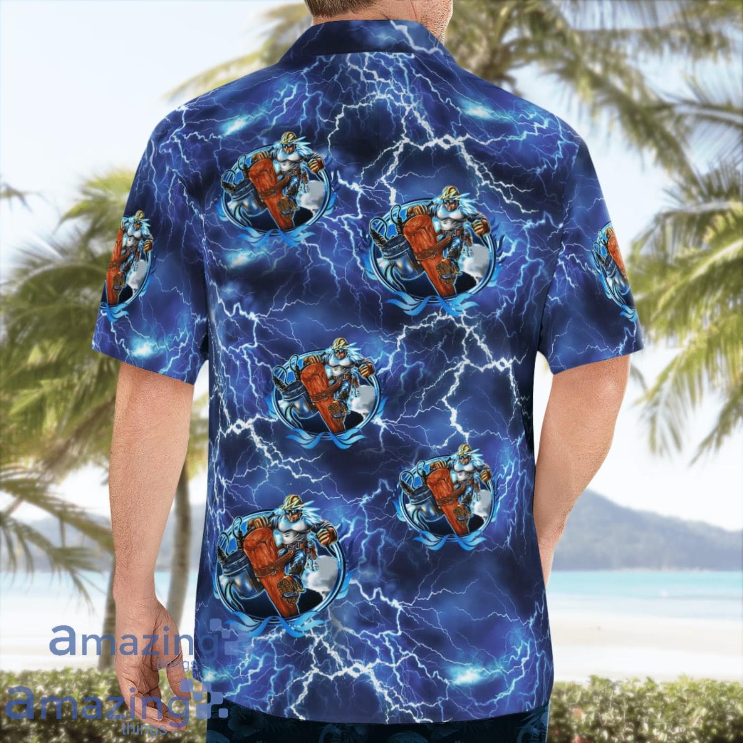 Lineman Flames Aloha Short Sleeve Hawaiian Shirt Summer Gift Details: