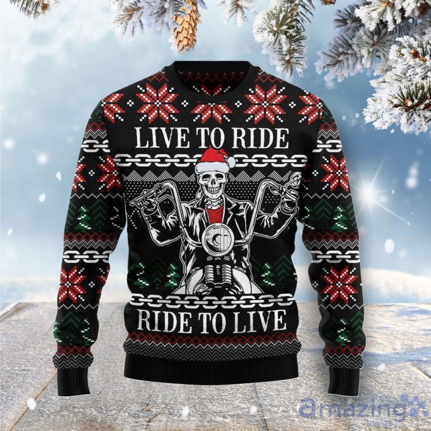 Live To Ride Motorbike Skeleton Ugly Christmas Sweater Informations: